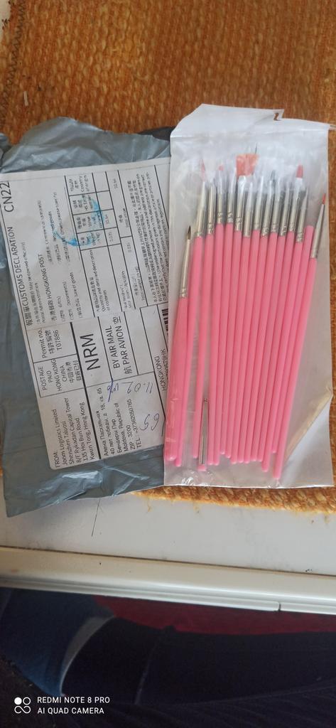 Огромное спасибо продавцу и всей команде Джума за заботу и роботу,,, Получила посылочку в которой было все 5 заказов, очень удобно, и поберегли мои ноги,,, Шутка,,, Кисточки очень аккуратно сложены в пакет и ещё один как паралончик, пришло всё целое и все 15 штук,,, Продавца рекомендую, Джуму спасибо огромное,,,