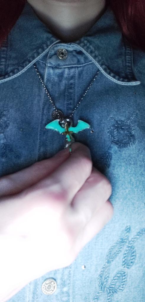 Кулон был в комплекте с цепочкой. Всё качественное, из прочного материала. На крыльях кулона приделан неоновый материал, который светится в темноте. Цепочка мягкая, приятная на теле. Заказ шёл не долго, меньше месяца. Цена вообще минимальная. Кулон подходит не только мужчинам, но и женщинам.