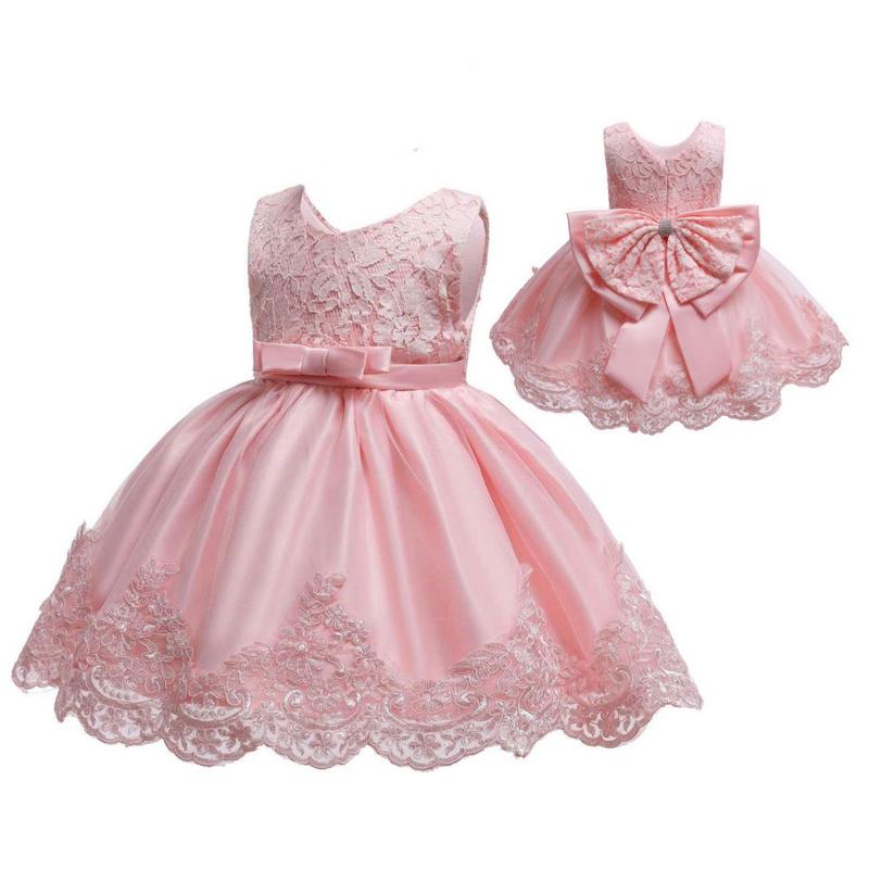 Модное нарядное детское платье без рукавов с асимметричным подолом кружевом и бантом