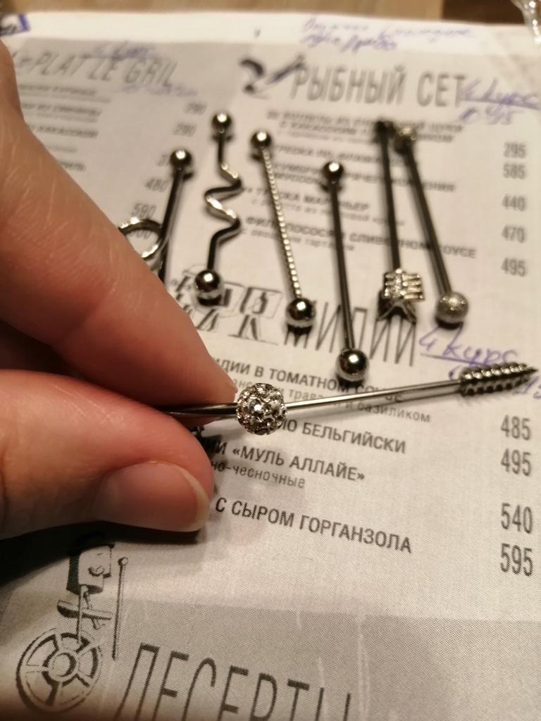 Начну с минусов: -сложно скрутить накрутки -две вообще не раскрутились -можно было сделать набор видов штанг и накруток отдельно (лично мне мнение так, как накрутки храню отдельно от украшений) куча шариков и прямых штанг Плюс: +красивые +удобные +мне подошли идеально (даже на не заживший прокол, не пошла алергия) +много вариантов комбинации (хоть каждый день меняй Посылкой довольна))) Придёт второй набор комбинаций будет больше, но есть такие, которые не подойдут для ежедневного использования