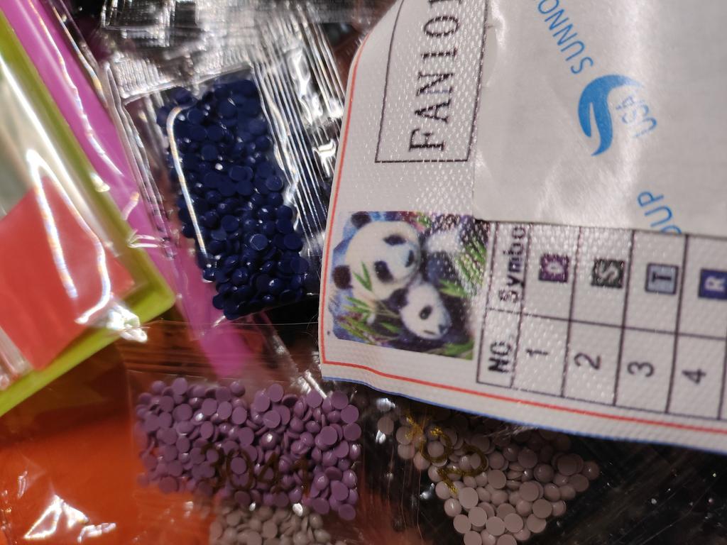 Доставка очень долгая четыре месяца, думала не придёт, немного помялась, надеюсь под прессом выпрямится, остальное после выкладки, спасибо продавцу . Дополняю, алмазов продавец не пожалел, положил много, но есть одно но, панды в тёмных тонах серые, зрачков нет просто чёрные пятна, конечно с заявленной картиной не соответствует , а так получились как будто грязные панды
