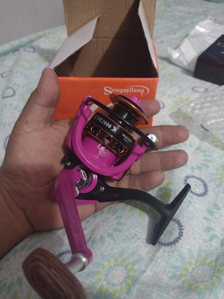 Посылка до Екб области шла ровно месяц.Не отслеживалась.Катушка обильно смазана маслом.Мелковата немного,сыну пойдет.Шпуля одна и тоже совсем мелкая.Посылку изрядно поминали в пути,но целая.Своих денег стоит.
