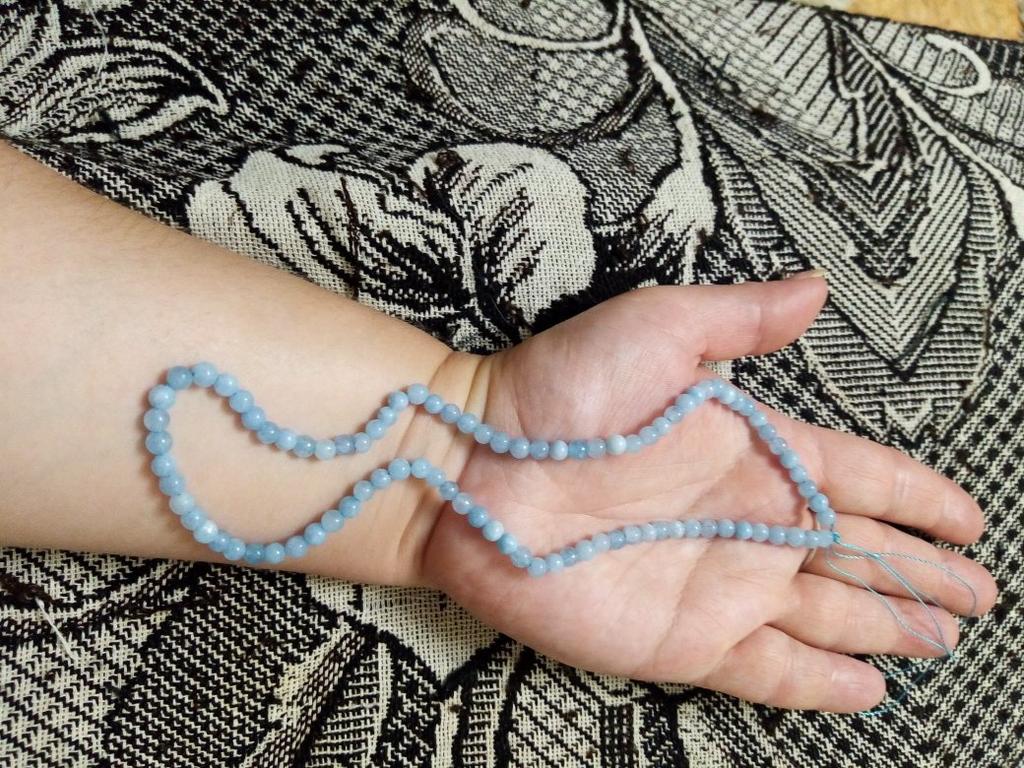 Очень красивые нежные бусины. На нитке 38 шт., что на 2 больше заявленных и это очень приятно. Камень точно натуральный, так как есть неровности, шероховатости и неравномерность в окрасе, но красивый вид бусин в целом не нарушен. Обязательно закажу ещё другого размера. Бусины супер!!!! Спасибо продавцу и Joom