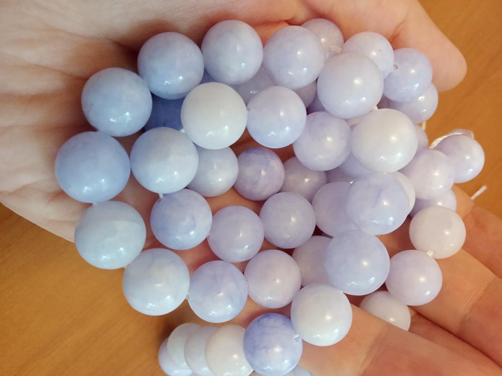 Доставка - месяц. Пришли две связки по 32 бусины размером по 12 мм. Похоже на прессованный камень. Бусины качественные, тяжелые, гладкие, красивого нежного фиолетового оттенка. Может, стекло? Но это точно не Ангелит. Бусины слишком гладкие и тяжелые как для Ангелита. Просто бусины. А вообще, Ангелит редко подделывают, так как это относительно недорогой поделочный камень, который практически не используют в ювелирном деле. Настоящий Ангелит лучше не мочить. Иначе он напитается водой и превратится в обычный гипс.