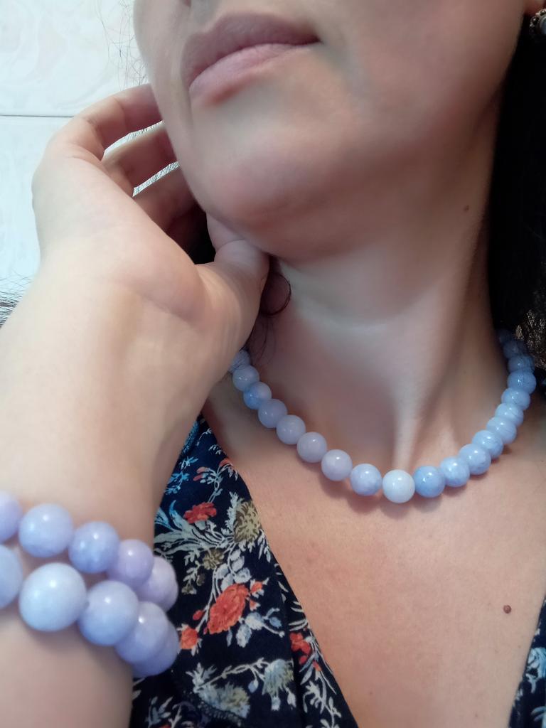 ❗ Хочу переписать свой отзыв❗Да простят меня,те люди,что читали меня раньше...Не стала снимать звезду... 🌷 Долгое время меня мучал вопрос... Что же это за камень? Продавцом заявлен что это Ангелит... И тоже так думала,потому что с Ангелитом никогда раньше не" встречалась" Т.к. разбираюсь в камнях,и в их энергетике, я поняла чуть позже,что это не Ангелит... Исходя даже из того, что я его нечаянно почистила в воде, с добавлением соли(так чищу многие камни) а это делать с Ангелитом ни в коем случае нельзя❗ 🌷На 1-фото это бусы которые я получила с Jooma,на 2 фото мои бусики после омовения,на 3 фото- КАЛЬЦИТ(просто одно лицо)🤗На фото 4 и 5 минерал Ангелит...🤔 🌷Это КАЛЬЦИТ...И он был подкрашен... 🌷Покровитель всех бизнесменов, экономистов и других представителей профессий, связанных с торговлей и деньгами – камень кальцит защищает от совершения необдуманных действий, недальновидных решений и невыгодных вложений. Также астрологи и маги советуют иметь при себе минерал всем людям, связанным с перевозками и автотранспортом, поскольку его магические свойства способны предотвратить трудности во время пути и помочь избежать водителю аварийной ситуации на дороге. 🌷Магические свойства Кальцита... 🌷Это камень, который позволяет раздвинуть границы обычного. Говорят, что он способствует расширению мышления, открывает глаза на то, что раньше было скрыто. 🌷Таким образом, кальцит помогает человеку постоянно двигаться вперед и развиваться... 🌷Астрологи считают, что кальцит не связан ни с какой планетой и не привязан ни к одному знаку зодиака. Он настолько дружелюбен, что готов содействовать всем людям вне зависимости от месяца их рождения. Исключением только является Скорпион, камень светлых сил (к ним и относится кальцит) не может ужиться со Скорпионом... 🌷Талисман из голубого(который у продавца) камня будет более эффективно помогать Ракам, а из зелёного — Козерогу. 🌷Известно, что кристаллы кальцита усиливают энергию. Активизируют развитие логического мышления и избавляют от накала страстей. Амулеты и талисманы из этого минерала подойдут бизнесменам, финансистам, юристам и врачам. Они сделают их дальновидными и оберегут от ошибок.(одни плюсы) 🌷Камень этот полезный как оказалось,никогда с ним раньше не сталкивалась... Я скажу из своего опыта, действительно- Он успокаивает и придаёт силы... ❗ Поэтому не знаю рекомендовать магазин и продавца или нет... Сделайте свой выбор сами❗
