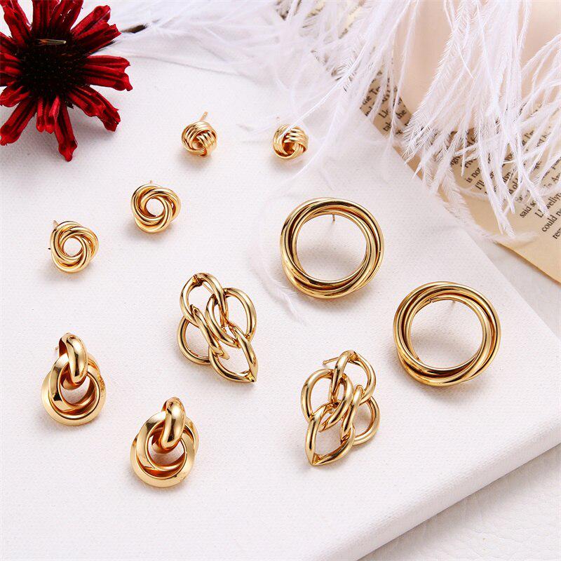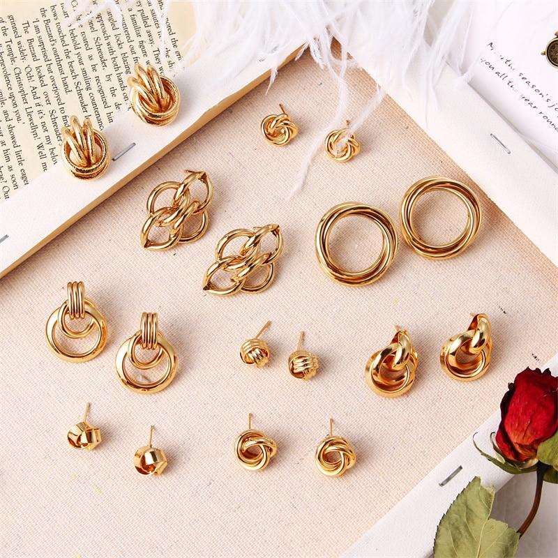 Серьги-гвоздики золотого цвета с нерегулярным геометрическим узлом для женщин и девочек, ювелирные изделия с витым галстуком