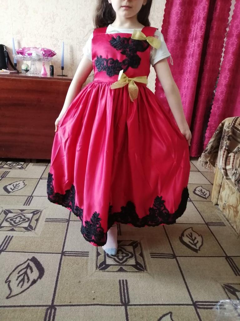 Платье заказала 18 ноября, а пришло 15 января. Шло два месяца. Выглядит не так как на фото из-за вышевки, она совсем не такая как в рекламе, смотрится каким-то чёрным пятном. Матерьял хороший, плотный атлас с подкладкой. На рост 123 заказала размер 120,можно было чуть длиннее , но тогда в талии было бы широко.