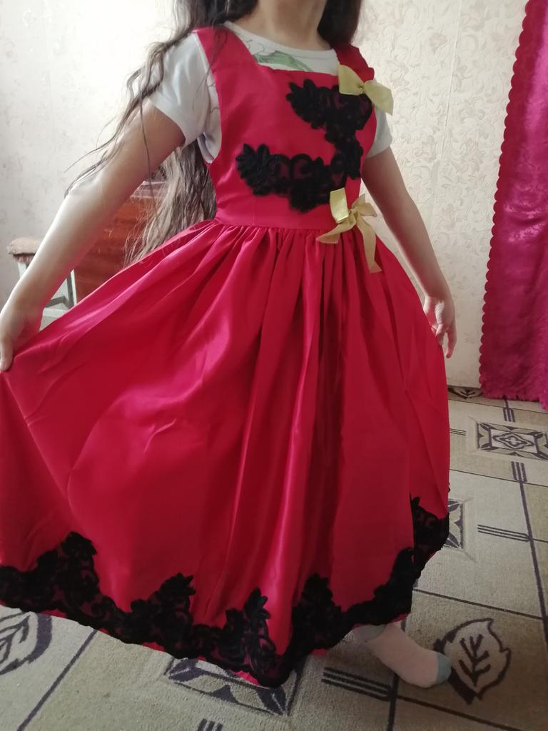 Платье на девочку. Брали на рост 130. В реальности на рост 150 не меньше. Но руки растут откуда надо- растянем жизнь платья на несколько лет- укоротим подол складками. Кое где торчат нитки, в верхней части замка леска- надо подрезать- колется. А так нарядное красивое платье, ребенок пищит от восторга.
