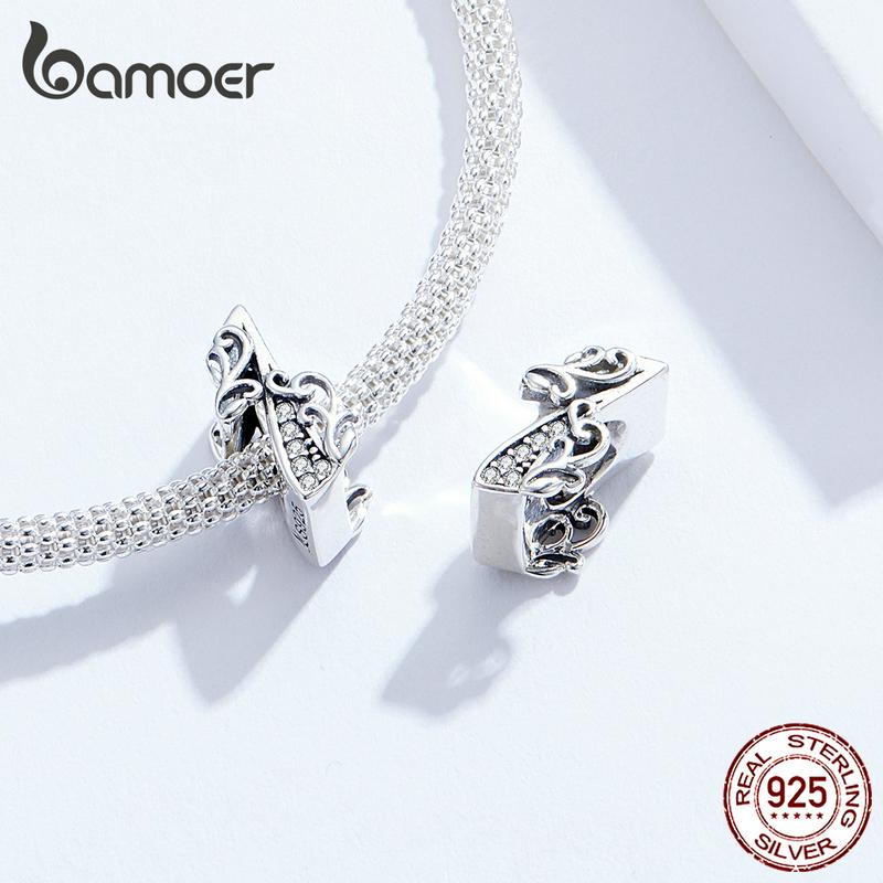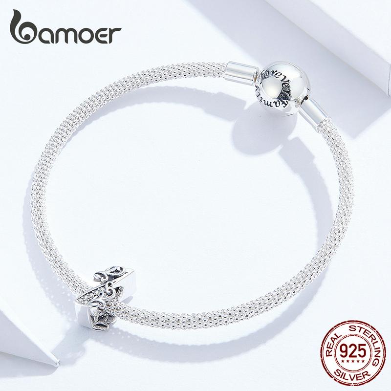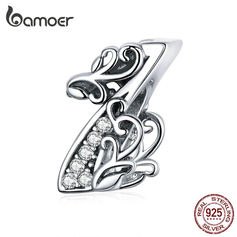 BAMOER Lucky Number 1 бусина с цирконами и рельефами из настоящего стерлингового серебра 925 пробы подходит для оригинального браслета