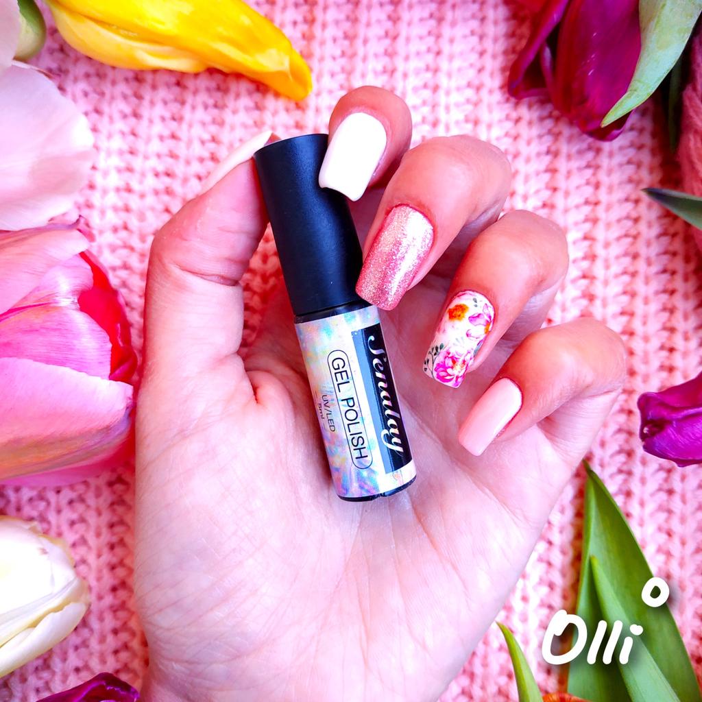 ГЕЛЬ-ЛАК С РОЗОВЫМ ГЛИТТЕРОМ 💅 Сегодня расскажу о красивом и даже нежном лаке от фирмы Senalay. Я вообще не знакома с этой маркой, понравилась идея что он светится, много блёсток и удобный не большой объем Посылка пришла за месяц. Упаковано в почтовый пакет. Также был зиппакет. Бутылочка не большая. Пластик. Объем - 5 мл. Мой лак под номером L271 Здесь в прозрачной основе плавает множество мелких блёсток. Смотрится очень красиво. Блестки не голографические, но все равно красиво играют на солнце. На типсе в 2 слоя нанесено не светлую основу. На ногтях же я буду в качестве подложки использовать розовый лак. На ногтях понадобилось 3 слоя, чтобы покрыть равномерно и убрать все проплешины. Как вы поняли, лак буду использовать на ноготкам средних пальцев. О других составляющих маникюра я рассказываю сегодня в моем Инстаграм Лак очень красивый и нежный. Идеально вписался в весенний маникюр. Получается очень нежно. Единственное, светящегося эффекту я так и не обнаружила.