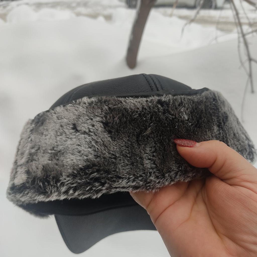 Обратите внимание в описание стоит 55-60 , но Размер соответствует нашему 57 размеру, ну чтобы не давил козырек она ближе к 56 размеру, похожа на кожу настоящую, внутри меха нет подкладка флисовая, мех только сверху, уши отстёгиваются на кнопках. По диаметру внутри 56 см. Сшита аккуратно вроде ничего не торчит, но крепление козырька где спица вставлена давит по бокам , она не закреплена никак и не прошита. Доставка быстрая 3 недели до Москвы.