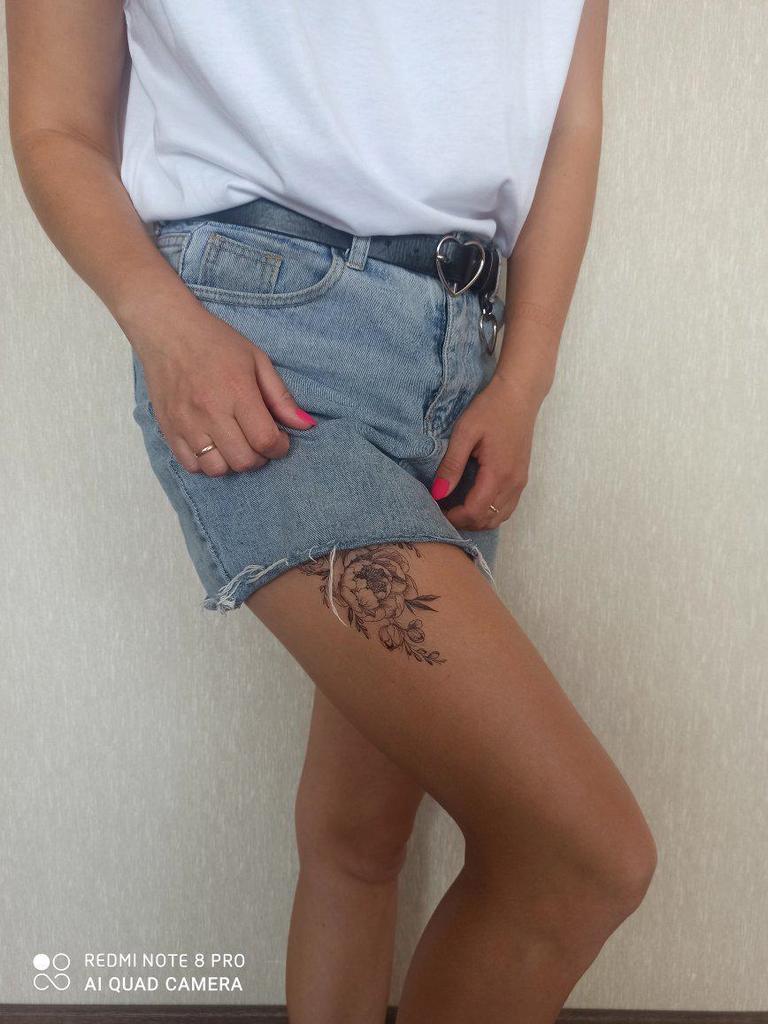 Переводные тату💕 Очень классная переводка, смотрится как настоящая, не отличить. По размеру не такая большая как на картинке продавца, но все равно мне нравится, как смотрится, заказала еще 3 штуки🙈💕 Наносится как самая обычная переводка. Минута, и все готово. Держалась у меня тату 2 недели. Однозначно советую💕 👍