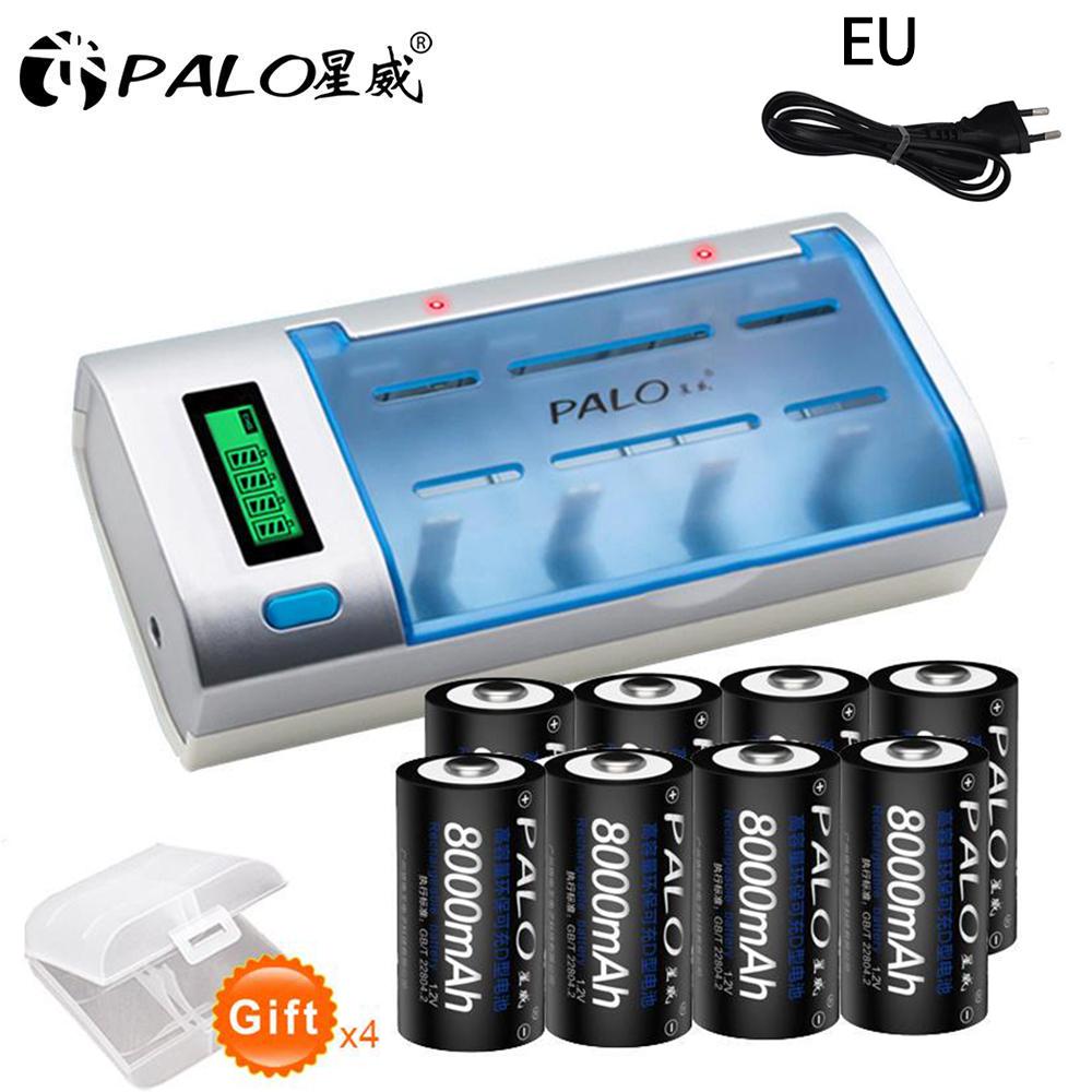 PALO 8 шт. аккумуляторная батарея Tpye размера D и интеллектуальное зарядное устройство для размера DC AA AAA