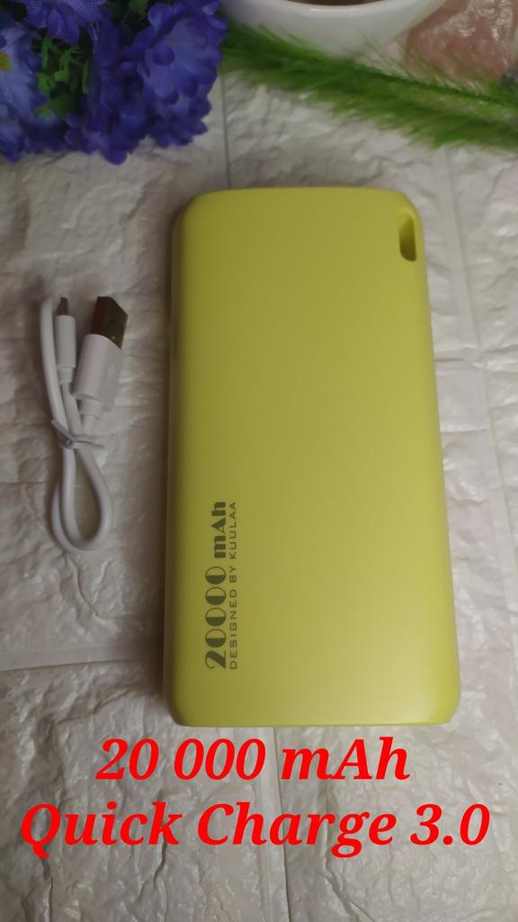 🔋 Power bank 20 000 mAh (+ порт QC 3.0) 🔋 ✅Приветствую уважаемые подписчики! Естественно не мог не поделиться моей очередной крутой и значимой покупкой, а именно вот таким обалденным аккумулятором на целых(!!!) 20 000 mAh. До этого пользовался на 10.000 и кстати приобретал тоже тут, но к сожалению его потерял, ну так вышло. В этот раз к покупке нового я уже подошёл более досконально и остановился на данном варианте. Почему именно на этом? А всё просто, сейчас объясню. ✅Первое что бросилось в глаза это оценка 4.8 при количестве отзывов более 2000 !!! Это на самом деле просто невероятно, далеко не каждый продавец сможет похвастаться таким обалденным результатом, поверьте это дорогого стоит. Ну и конечно топовые характеристики аккума, это ёмкость в 20000 mAh, ведь своей десяткой я пользовался довольно активно и зачастую в самый неподходящий момент не хватало заряда. Но и это ещё не всё: после ёмкости важным критерием для меня было наличие скоростного порта QC 3.0, ведь мой телефон поддерживает эту функцию, ну глупо было бы этим не воспользоваться. ✅Скучный серый или чёрный цвет я сразу не рассматривал, ну их, надоели. Взял весёленький жёлтенький. Ну и конечно отдам должное золотой панели с портами, смотрится невероятно. На ней расположены 2 USB порта (1 скоростной), разъёмы type c и micro USB, а также индикатор уровня заряда. Ёмкость, более чем уверен соответствует заявленной, как минимум хотя бы потому, что это надёжный и проверенный годами бренд KUULAA. После распаковки индикатор показывал 2 пункта из 4. Оставил заряжаться на 4 часа, стало гореть 3 из 4. То есть внутри уверен не будет фейковых банок с песком. ✅Если вам понравился товар, то советую закинуть его в корзину или избранное, чтобы в дальнейшем было проще найти для покупки! Резюмируя свой обзор могу со спокойной душой и чистой совестью рекомендовать к покупке, нечасто такие качественные аккумуляторы можно встретить на Joom, даже не советую заморачиваться искать дешевле и "кота в мешке". Всего вам хорошего и удачных покупок! ❤️