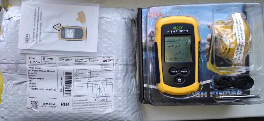 Комплектация полная, есть инструкция на русском языке. На воде не проверял, а так все включается, вроде все понятно. Попробовал на воде, не все понравилось. Двухлучевой датчик работает корректно, глубину и рыбу показывает правильно. А вот безпроводной (уточка) по глубине глючит, показывает завышенную глубину. Так что осадочные остался. А ещё можно было кронштейн на проводной датчик для установки на транец лодки включить в комплектацию. Проверил ещё раз на водоеме, безпроводной датчик нерабочий, все время скачет глубина. Написал претензию, обещали разобраться. Жду ответа.