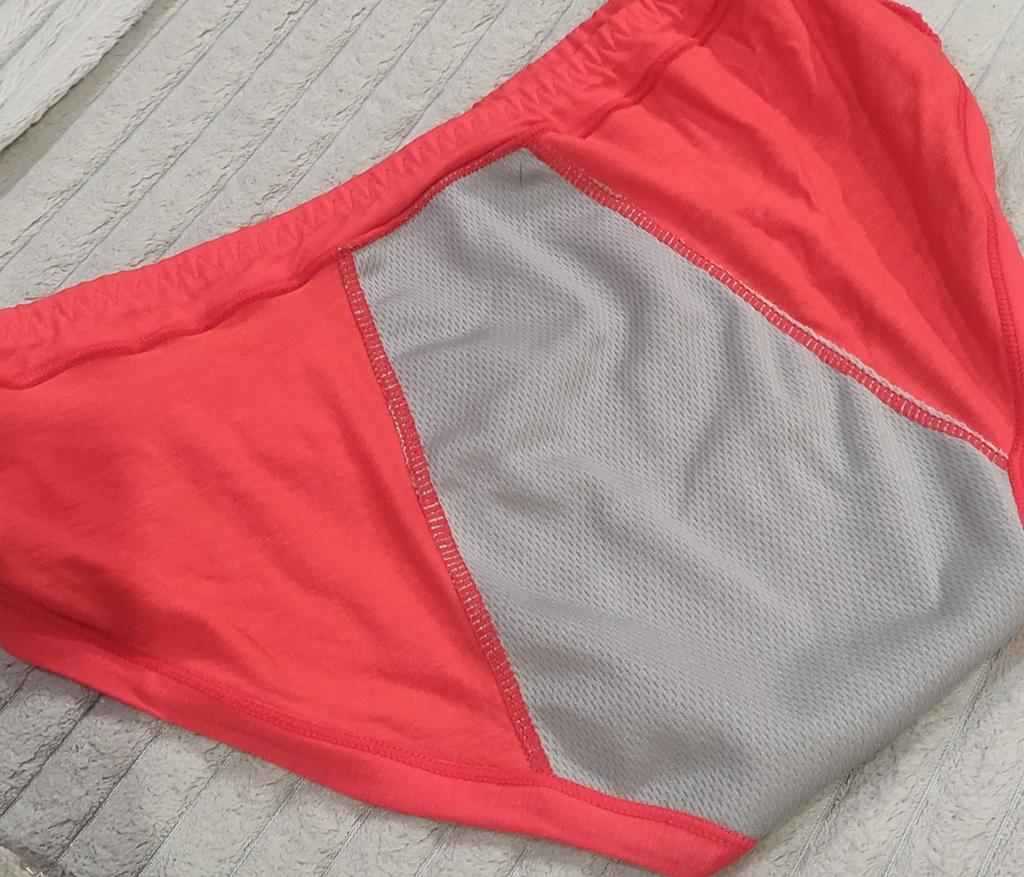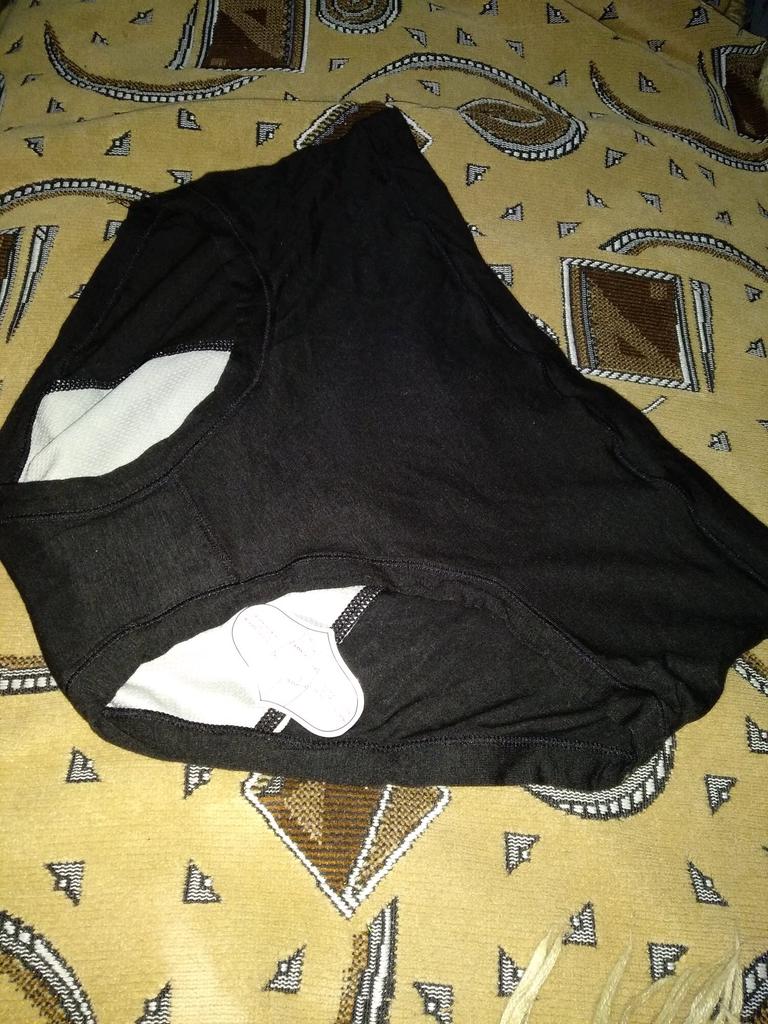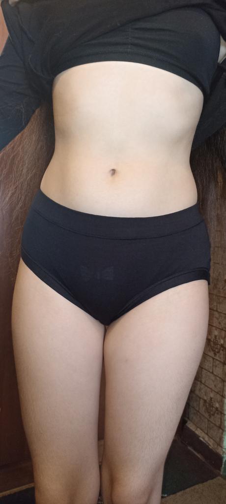 Ляжки неполные, талия 78, бедра 98 - впритык, видимо на размер 42-44, на свой 44-46 я бы взяла на размер, побольше. Относительно низкая посадка, подклад только по задней части трусов и немного захватывает саму промежность. Без прокладки носить не вариант, только как доп защита от протеканий при сне на спине. Материал неплохой как у обычных тканевых трусов, тянется немного. После стирки все ок, не линяют