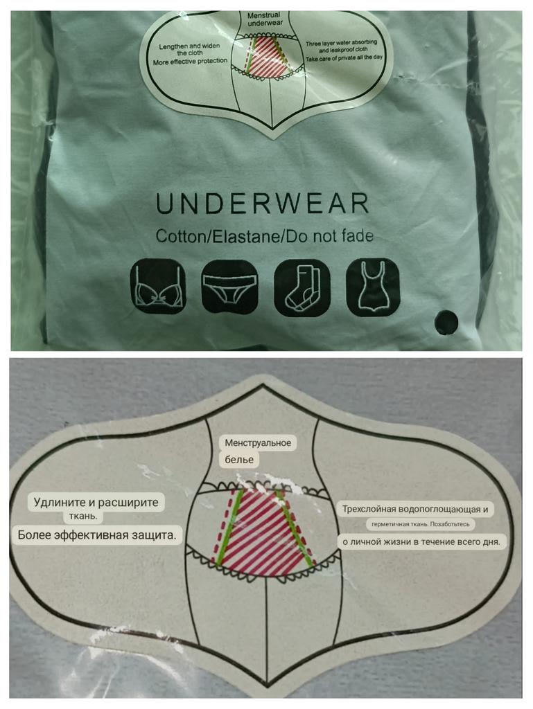 Сам товар не плохой, но конструкция... Нафиг нужны менструальные трусы, если они не "дотягиваются" до "самого главного"? А ещё они безбожно шуршат. Сам "подгузник" на попе, толку от него мало. Купила ещё другие модели, где ластовица продлена вперёд, вот они удобные. Или это у меня анатомия неправильная...