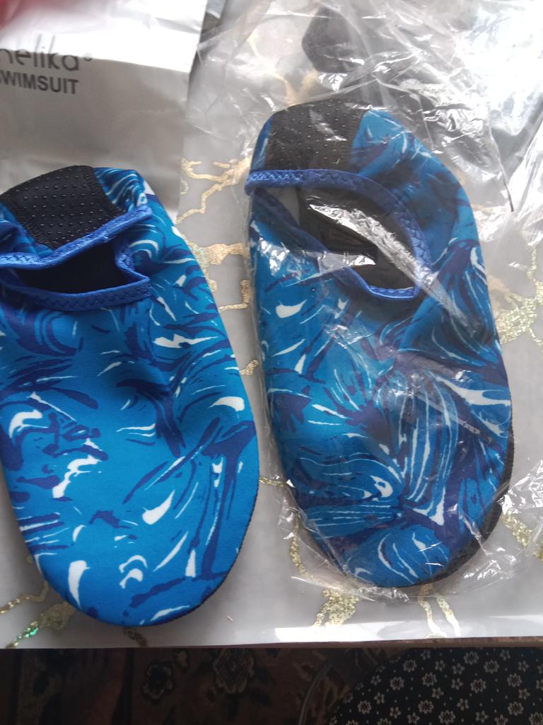 Закащ отправила 13.05.23 Получила 10.06.23 в почтовом терминале. До Эстонии посылка шла 29 дней, это быстро! Для внука заказаоа тапочки для плавания, чтобы не повредить ноги. Они быстросохнущие с нескользящей подошвой. Цвет соответствует заказу.,голубой. Продавцу и службе доставки 5+ Решила написать правду!!@ Сьездили в Турцию..на 2 день купания в море, все подошвы тапочек пришли в негодность.. Разорвались об камни. Т е наверное только по песчангму пляду можно.