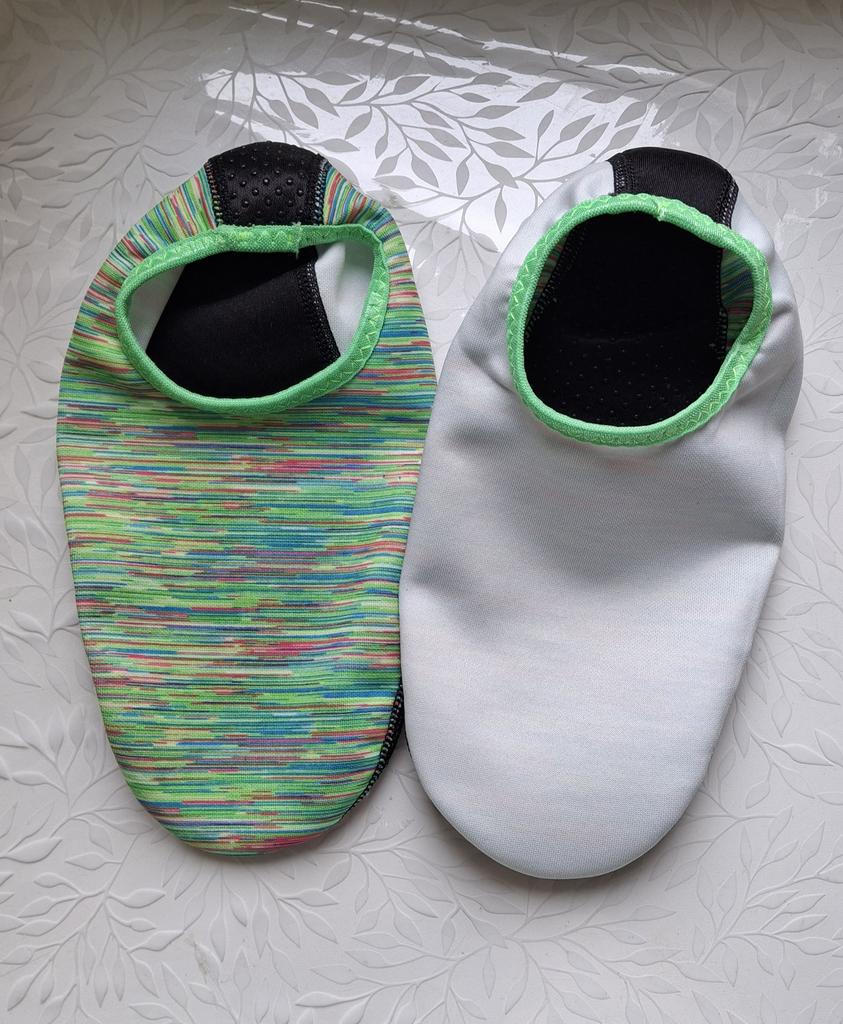Пляжная обувь (носки для ходьбы по песку и плавания). Заказала размер XL для стопы 24,5 см — подошли идеально, сидят хорошо, не жмут и не спадают, есть свобода. Материал лёгкий и быстро сохнет, что важно при плавании и прогулках по влажному песку. Носки защищают ноги от горячего песка и мелких острых камешков. Гибкая мягкая подошва с антискользящим покрытием обеспечивает уверенную ходьбу по гладкому покрытию. Насмотрелась в отпуске, как многие пользуются такими носками для плавания — решила тоже заказать и не пожалела. Они удобные, практичные и занимают мало места, что удобно для путешествий. Рекомендую для тех, кто часто ходит по пляжу и плавает, особенно если важна защита и комфорт! ⭐ Продавец упаковал товар в почтовый. ⭐ Трек номер отслеживался до почтового отделения. ⭐ В приложении пришло уведомление о готовности к выдаче заказа. ⭐ Доставка в Петербург заняла 24 дня.