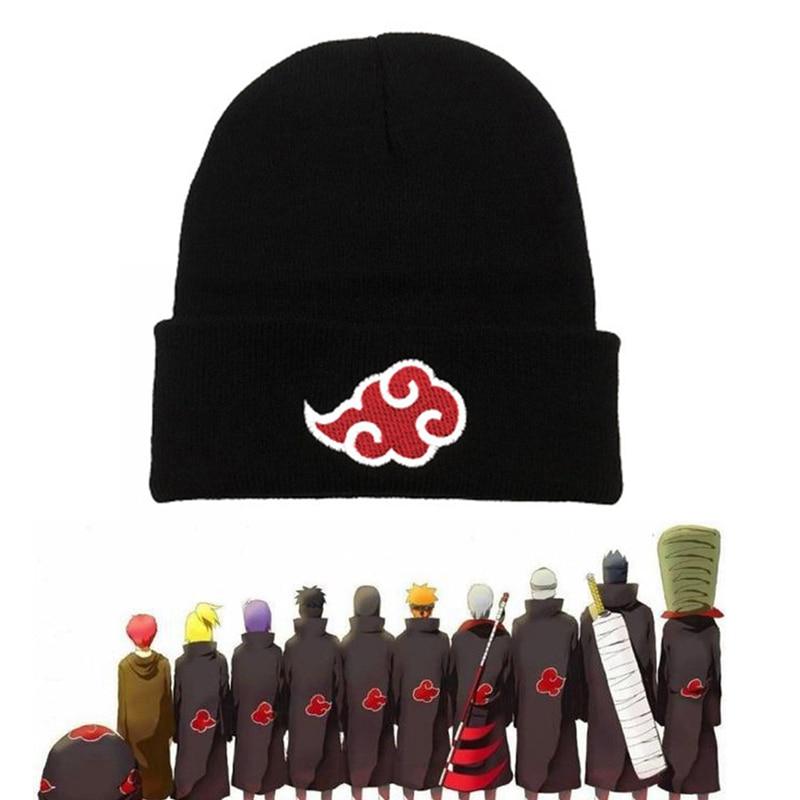 Японский логотип Акацуки, аниме Наруто, повседневная вязаная шапка, однотонные шапки унисекс в стиле хип-хоп с черепами