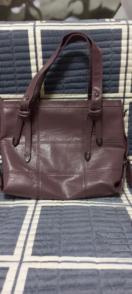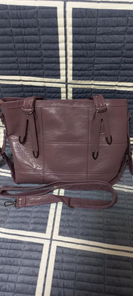 Отличная сумка 👜 Вместительная Красивая Удобная Мягкая Никаких дефектов, один минус в том что продавец в рекламе показывает два отделения но сумка 👜 имеет одно отделение, имеет плечевой ремешок, фурнитура сероблестящея, цвет как на мои фотографии тёмнофиолетовая
