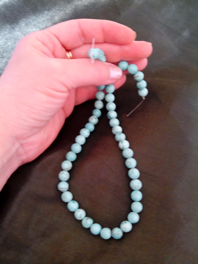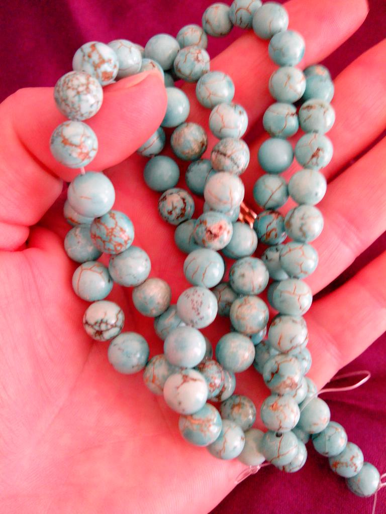 Это уже мой второй заказ таких бусин очень похожих на бирюзу. Пришли такие же как и первые и по цвету и по диаметру и такие же на ощупь холодные ( в первом отзыве я почти подробно описала своё мнение))) буду надеяться что это всё же натуральная бирюза!? Теперь у меня бусин достаточно чтоб довести их до ума т.е. куплю застежку и сделаю бусы и браслет. Заказ шёл как и в прошлый раз чуть больше месяца в регион 13, заказом довольна на все 100% Продавцу спасибо!♥