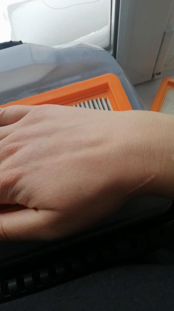 Фильтр пришёл целый, не мятый. Внешне похож на оригинал. Однако размер чуть меньше. И фильтрующая белая часть сделана из другого материала, более мягкого. По бокам ячейки с обеих сторон залиты клеем. В оригинальном такого нет. После уборки фильтр остался наичистейшим! Хотя с оригинальным фильтром такого никогда не бывает и на фильтрующей части всегда остаётся пыль. Можно сделать вывод, что частички пыли не особо задерживаются на фильтре-дубликате, и видимо, проникают сквозь него. Вердикт: я не буду пользоваться данным дубликатом. Для пылесоса, купленного за такую цену, лучше использовать оригинальный фильтр. Ибо, как говорится, скупой платит дважды.