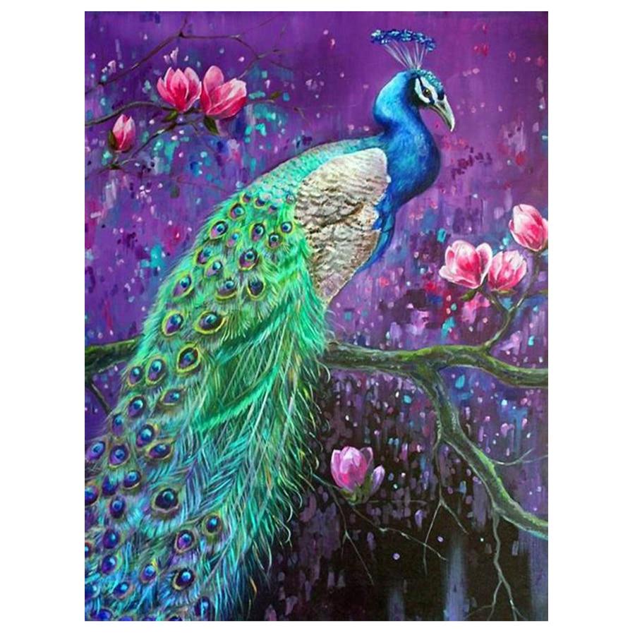 Diy Алмазная картина Павлин Цветок Животные Мозаика Вышивка Полный круглый дрель — купить товар онлайн с бесплатной доставкой по всему миру!