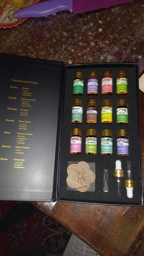 Каждая коробка «7-дневного дневника эфирного масла» содержит 12 кусочков бутылок с эфирным маслом по 5 мл. Это идеальная коллекция для вас, чтобы испытать различные ароматы каждый день и даже сделать свои собственные смеси эфирных масел для еще лучшего опыта. Проверьте все различные виды чистого эфирного масла, которые мы предлагаем вам в этой коллекции, и сделайте его своим сегодня или удивите кого-то, кого вы любите, в качестве подарка.