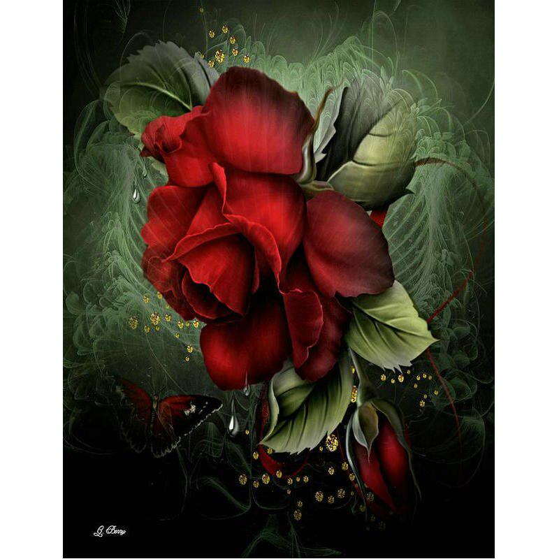 5D Алмазная картина Красная роза и бабочка Украшение дома Полная круглая вышивка