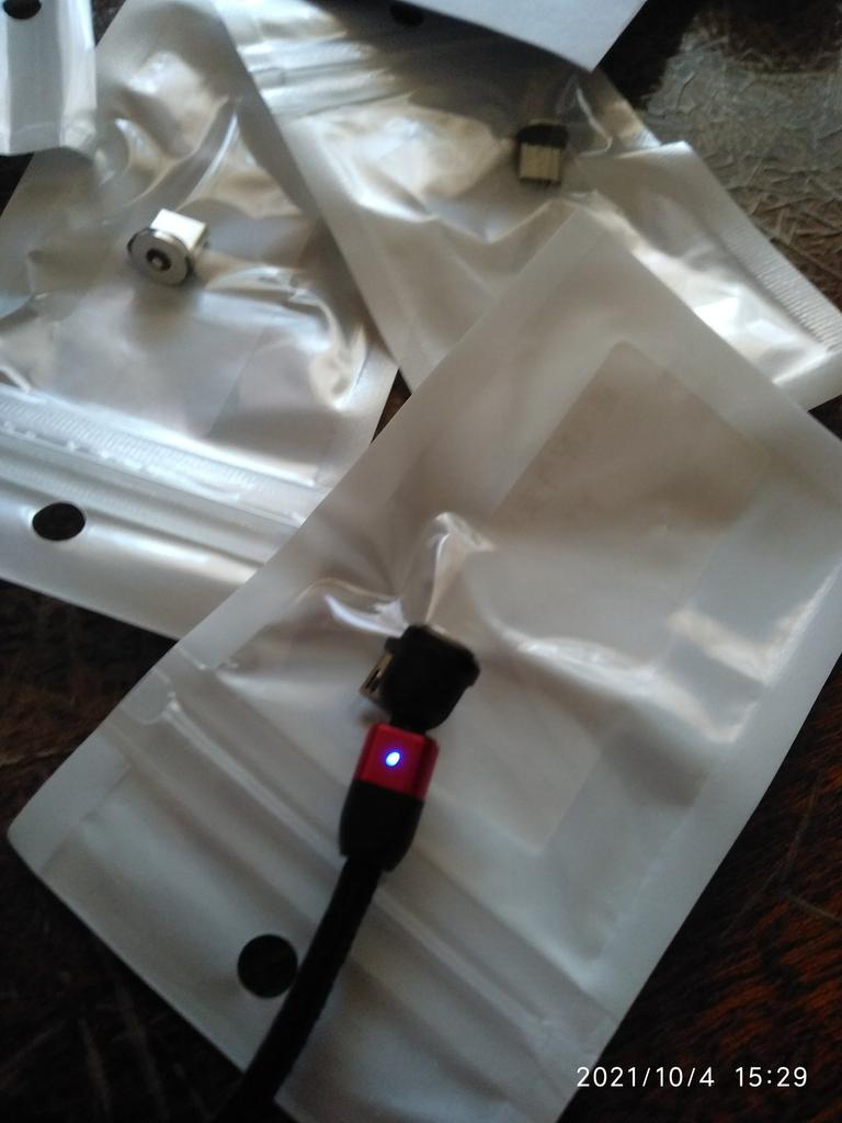 Получила на почте. Упаковка целая, всё работает. Шнур тканевый, есть световой индикатор подключения к сети и в темноте этот наконечник бьёт очень ярким голубым лучом - не найти его невозможно! Пользоваться, действительно, намного удобнее обычных зарядок - шнур сам присоединяется, прямо в центр и так плотненько, как нужно! А в процессе зарядки свободно вращается вокруг своей оси... и заряжает очень быстро! Настолько меня впечатлило это чудо, что даже ещё несколько штук дозаказала! Рекомендую руками и ногами! Видосик, если не забуду, будет чуть позже - куда-то улетел мой маникюр...💅😖