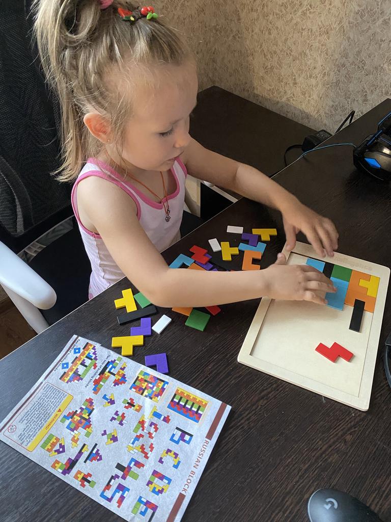 Читающий отзыв, приветствую тебя! Сразу скажу, что это офигенная штука!) Сыну пока больше нравится рассыпать фигурки, а вот я прям залипаю иногда с этим планшетом. Для любителей голволомок - отличная идея. Из плюсов: множество вариантов сборки, можно из деталек с детьми разнообразные фигурки составлять и даже буквы. Плюс развитие мелкой моторики и тренировка набоюдательности. Из минусов: планшет немного шероховат, надо его подшлифовать, чтобы занозы не поймать. Но общее впечатление - мне очень нравится эта игра. Рекомендую
