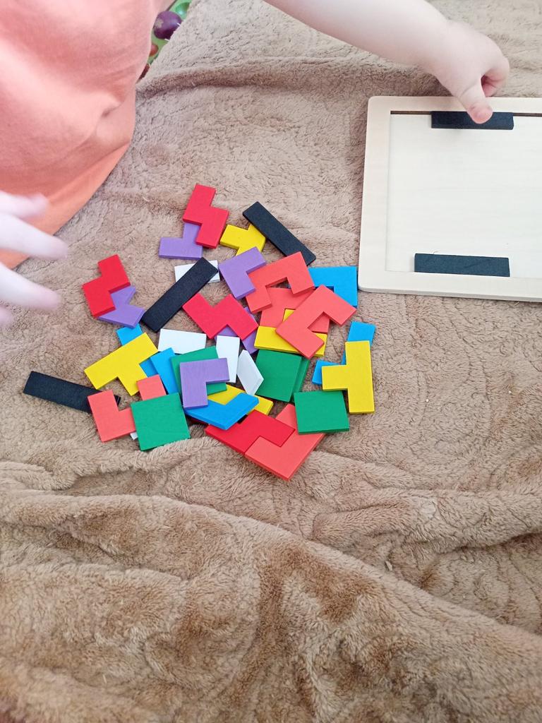 Деревянный тетрис 🧩 Игра в тетрис развивает у детей логическое и пространственное мышление, учит просчитывать игру на несколько ходов вперед, а также улучшает быстроту реакции. И так о самой посылке: 🔺Размер 18Х27 но высота не соответствует описанию, у продавца указано 1 см. а реально 0.5 см. ( фото 3). На фото они более объемные а на деле тоненькие , но на суть игры никак это не влияет. 🔺Сзади есть листок с инструкцией, если ребенку будет сложно. Все фиругы и сама доска из дерева ☺️ 🔺Хоть и игра детская, взрослым так же она будет интересна, позволяет отвлечься и морально расслабиться 👍🏻 🔺 Зазубрин нет, фигуры лёгкие вырезаны ровно, покрашены хорошо, яркие и красочные цвета 🔺 В пути посылка не пострадала, стандартный пузырчатый пакет, сама доска также упаковано в пленку. Однозначно рекомендую 🤗