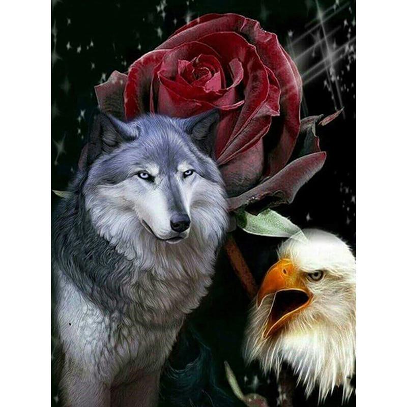 DIY 5D Алмазная картина Волк Животное Украшение дома Ручная работа Art Kit Полная дрель Вышивка