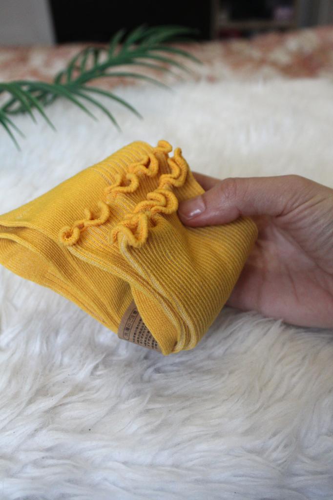 Носки 💛 Носки классного качества, повторная покупка ✨ Брала ранее в бордовом цвете) Носки из хлопка с небольшим количеством эластана, носятся отлично 👌 Длинная модель, подходят на межсезонье, когда и прохладно и модными быть хочется 💯 Заказала яркий цвет, для солнечного настроения ☀️ Качество, как и прошлый раз, отличное. Носочки в рубчик, край с волнистым оверлоком. Выглядят с биркой стильно, можно смело брать на подарок. 💫 Рекомендую 💯