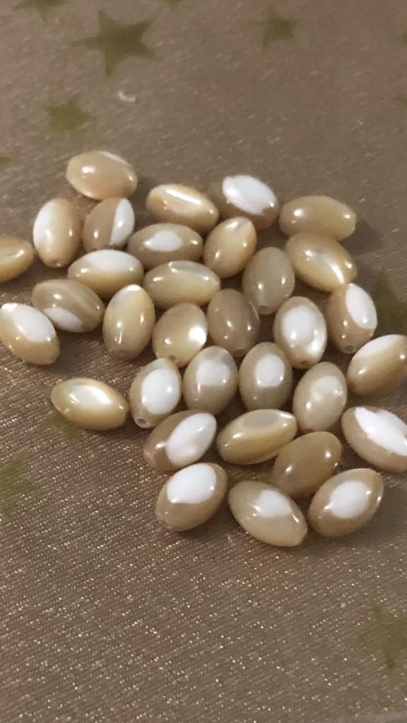 Я вообще думала ,что это брак. Полбусины белой, или островок белый, остальной цвет кофе с молоком. Нет, смотрю, не брак, фото продавца такое же. Не нравится мне такая расцветка, смотрится недокрашенными. По моемому это просто некрасиво , такое не вставишь в бусы. А жаль, надо было белый цвет покупать. Просто блестел бы и все.