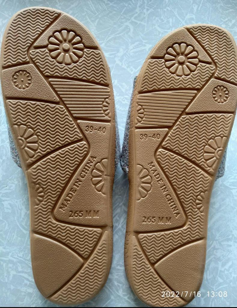 Замечательные тапочки, очень ждала, как раз на лето, легкие шлепанцы с открытым носом. Размер 37-38 на мой 37 отлично. Стелька из синтетической плетеной ткани, верх - плотная буклированная ткань очень интересного розового цвета, внутри поролоновая ткань. Ношу с удовольствием, очень удобные, сидят на ноге хорошо, нигде ничего не пережимают. Ноги средней полноты, часто отекают, но все хорошо. К покупке однозначно советую.