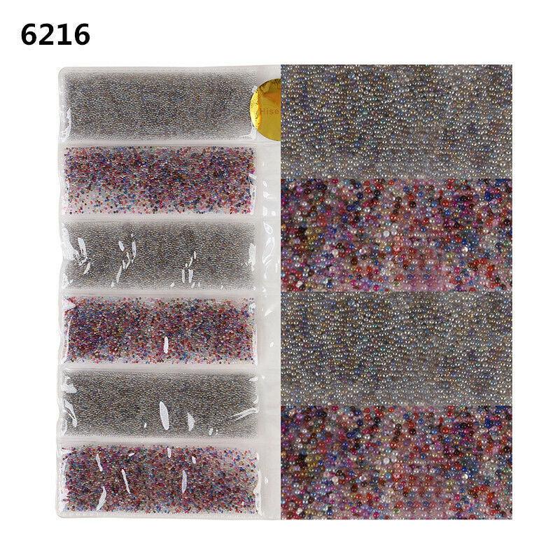 3D бисер - бульонки для дизайна ногтей, 6 цветов в наборе