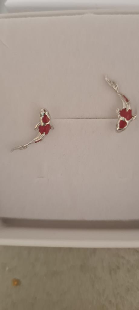 Очень классные серьги! Необычные, красивые. Размер, правда, меньше, чем я ожидала, но это их не портит. Глаза у рыбок кои из маленьких фионитов, это просто невероятно милые рыбки, носить их можно по-разному, нужно только рыбку развернуть или поменять сторонами серьги. И всё время красиво :). Фото добавлю позже.