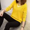 Осенний женский свитер с длинным рукавом, однотонный, с вырезом, повседневный пуловер, свободный женский свитер с V-образным вырезом