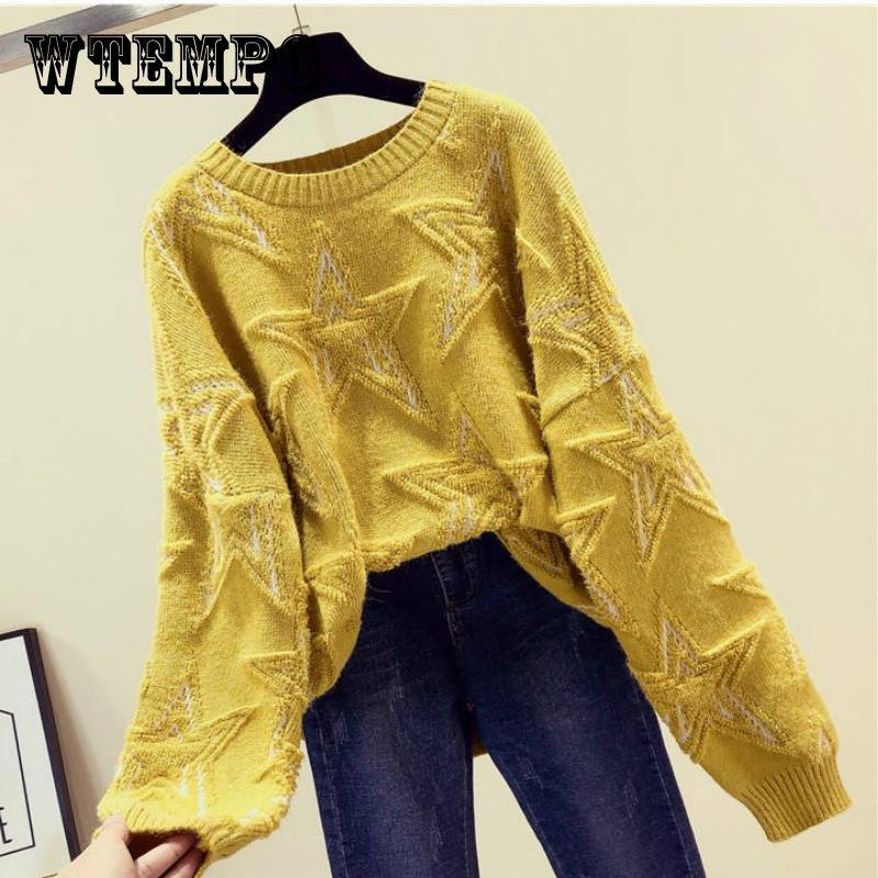 Вязаный свитер со звездами, осенне-зимний жаккардовый свободный свитер с круглым вырезом и длинными рукавами — купить товар онлайн с бесплатной доставкой по всему миру!
