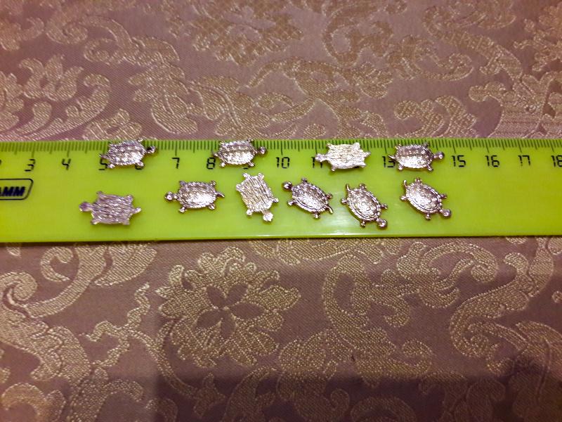 Десяток золотых черепашек. Можно использовать для декора, подвесок, небольшого презента. Не совсем аккуратно сложены. Но в целом сойдёт! Продавцу спасибо!