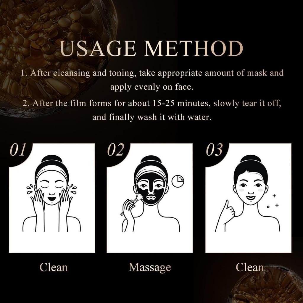1.После очищения, нанесите количество маски на лицо. (Обратите внимание, чтобы избежать глаз и губ.)