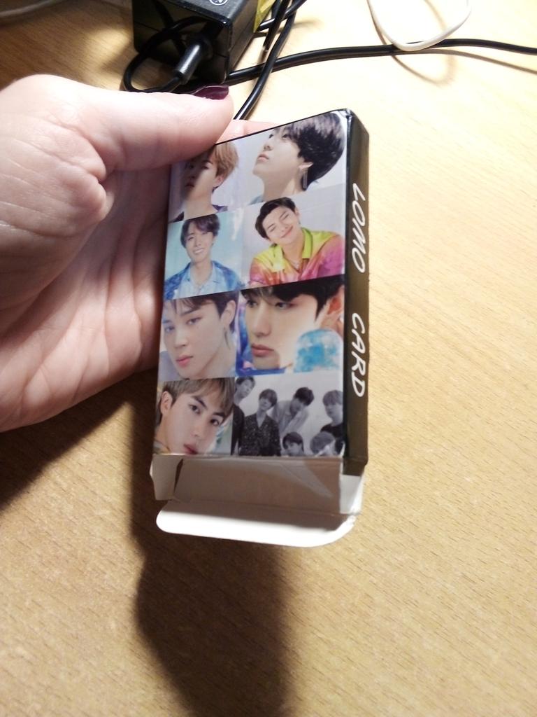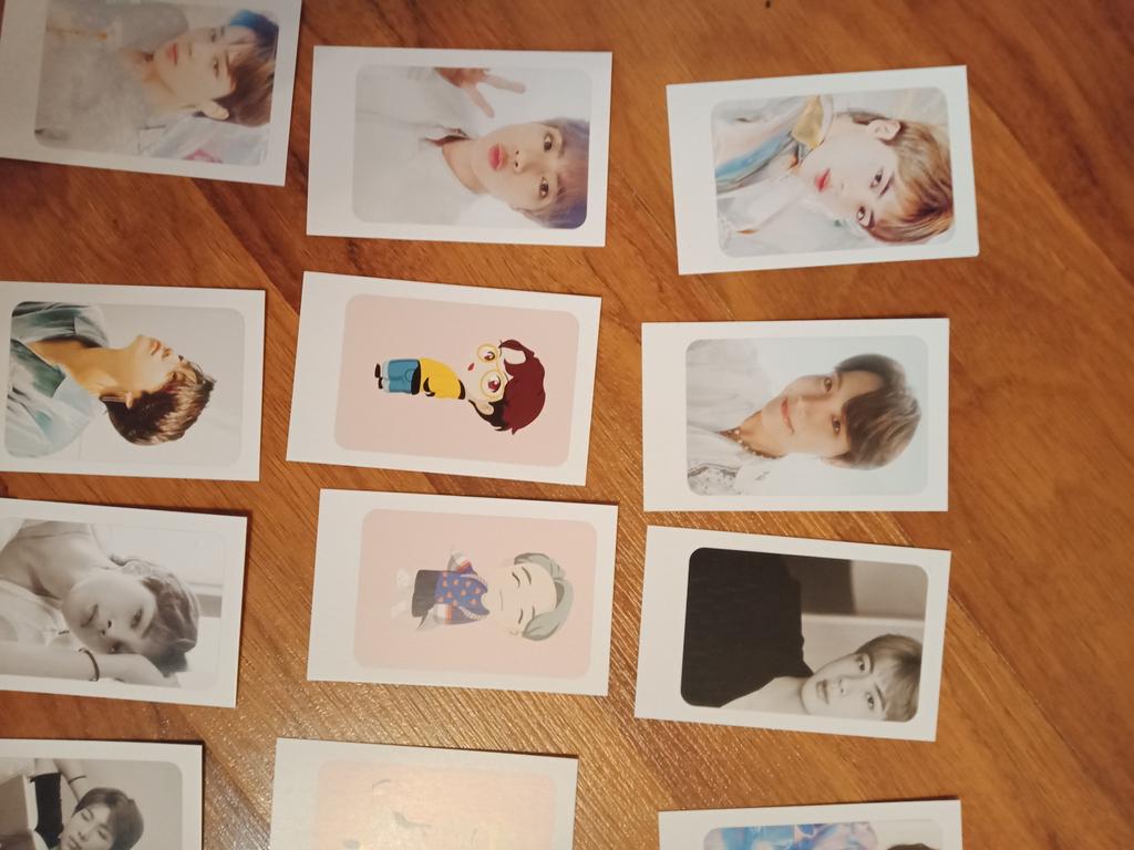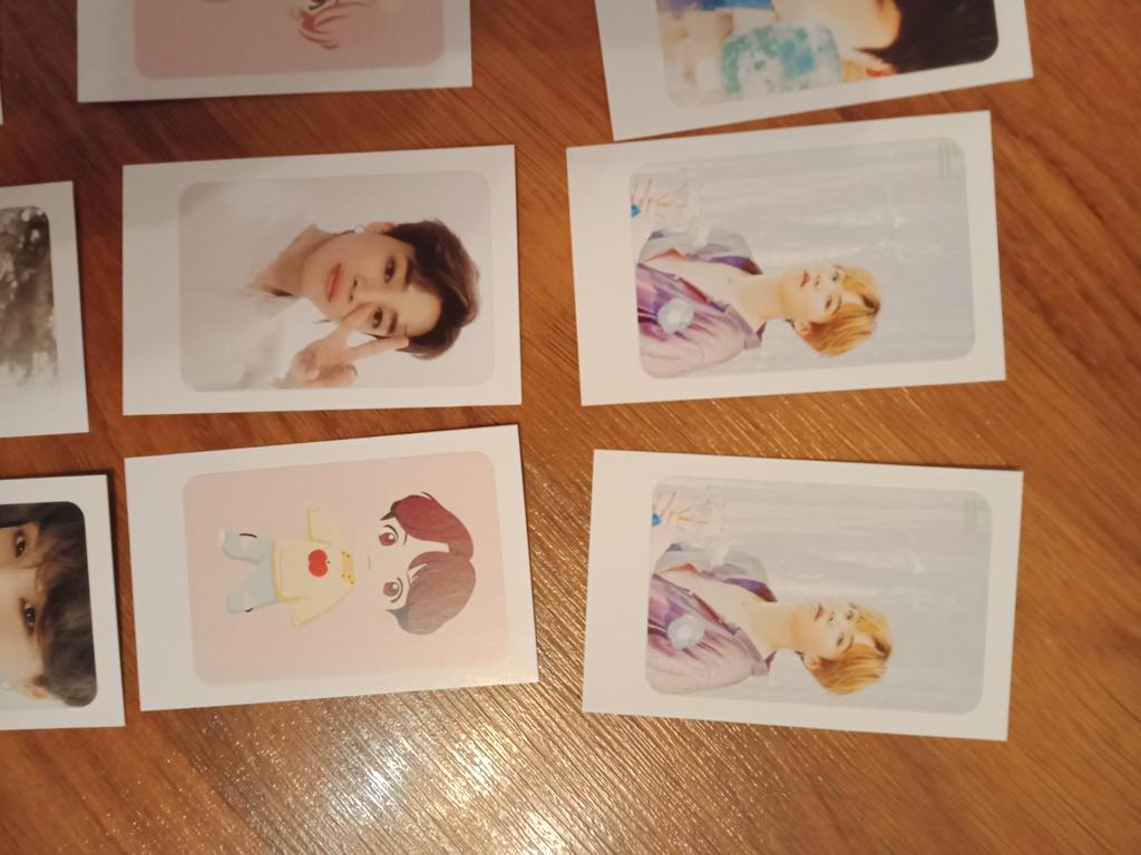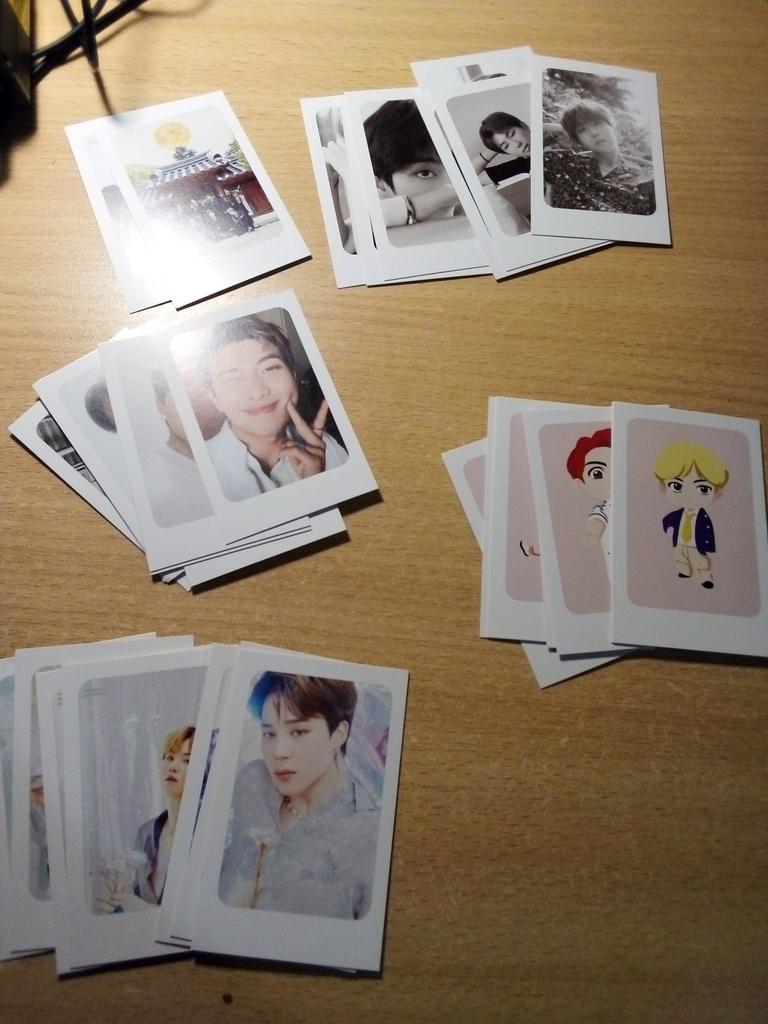Карточки хорошие Упаковка немного мятая, а так всё хорошо Положили две одинаковые карточки Юнги Но Юнги много не бывает поэтому я не жалуюсь