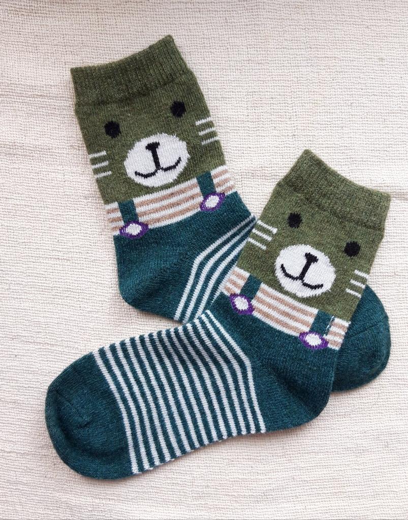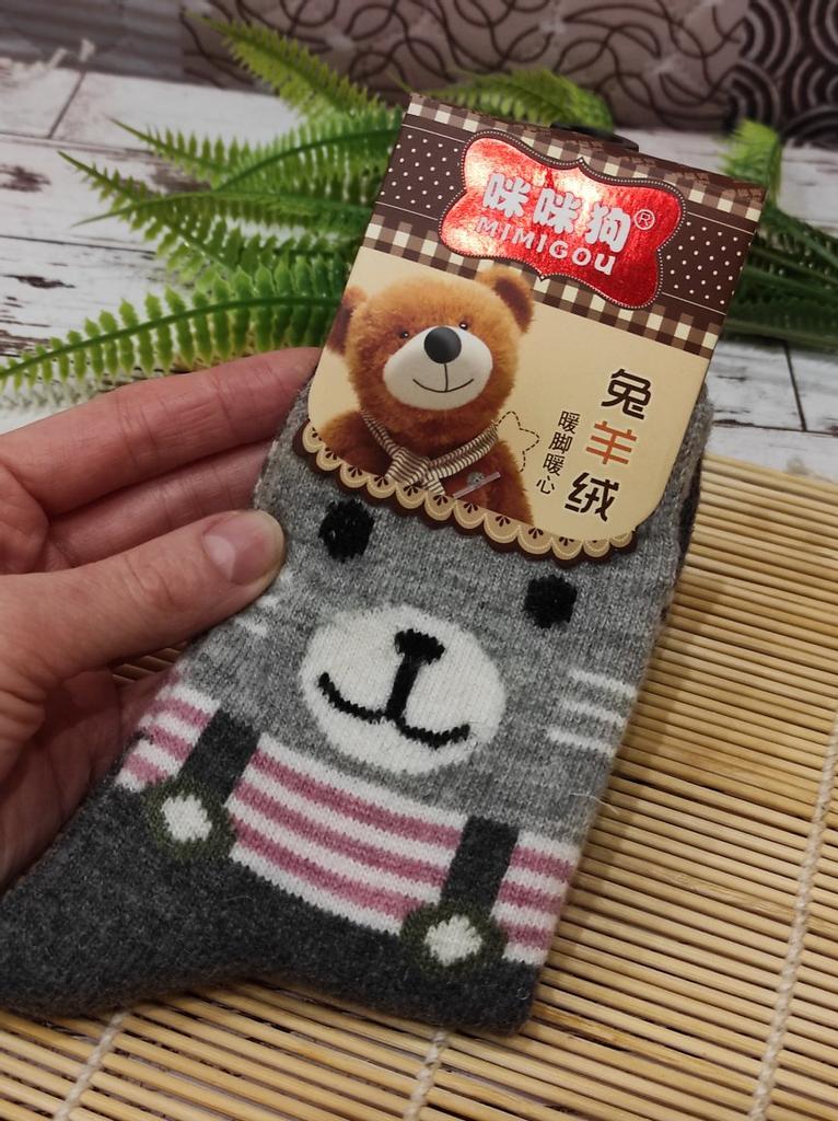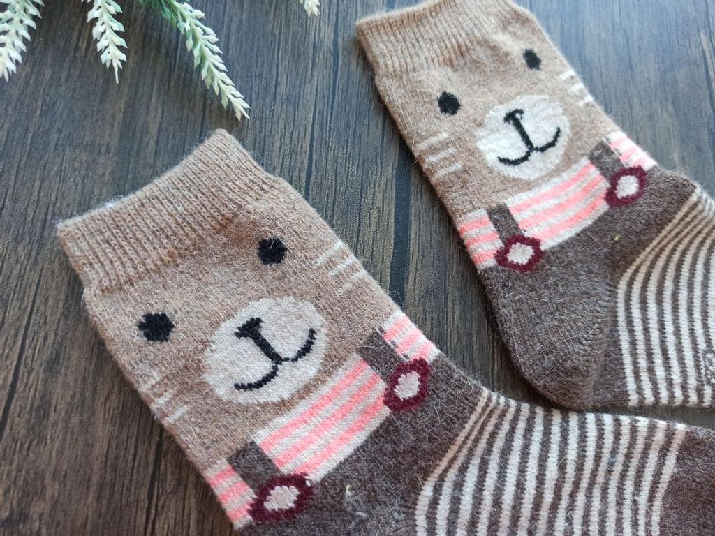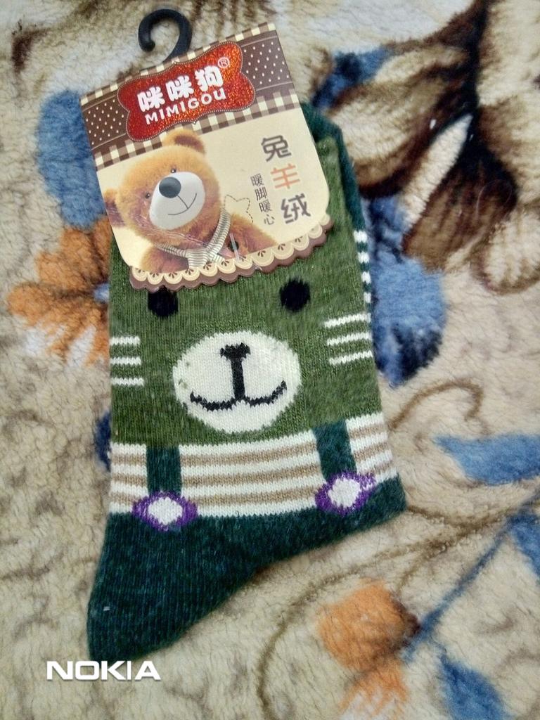 Детские носочки Мне кажется, что это мишка ми-ми-мишка)) в тельняшке 🐻У продавца заявлено на возраст 6-10 лет. У меня мужчины крупные. Одному 5 лет и 32 размер обуви; а другому 2 года и 27 размер ножки. Как видите и тому и другому носочки подошли)) 🐻если верить своим ощущениям и этикетке, то в составе носков присутствует натуральная шерсть. Перевод гласит, что это овечья шерсть и там же значится, что это кашемир. К слову, кашемир это подшёрсток горных коз.... В общем, насчёт коз сомневаюсь, а вот 27% овечьей шерсти -это факт. Так что, на тонкие колготки или бумажные носочки деткам отлично. Старший у меня привередливый он не может носить шерстяные носки, они ему ,,колят ноги,, , а младший может надеть носки-самовязки на босую ножку и отлично себя чувствует при этом. 🐻носочки мягкие. Торчащие нитки, учитывая то, что носки с жаккардовым узором, в пределах допустимого. Трикотаж плотный. Продавцу спасибо большое!