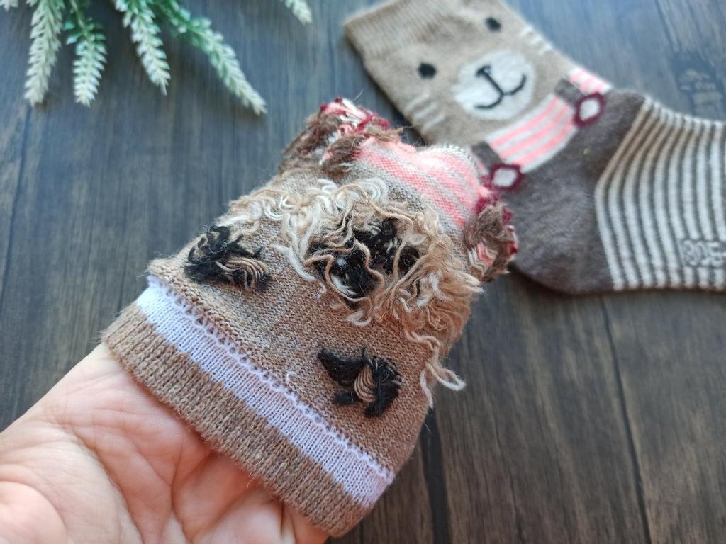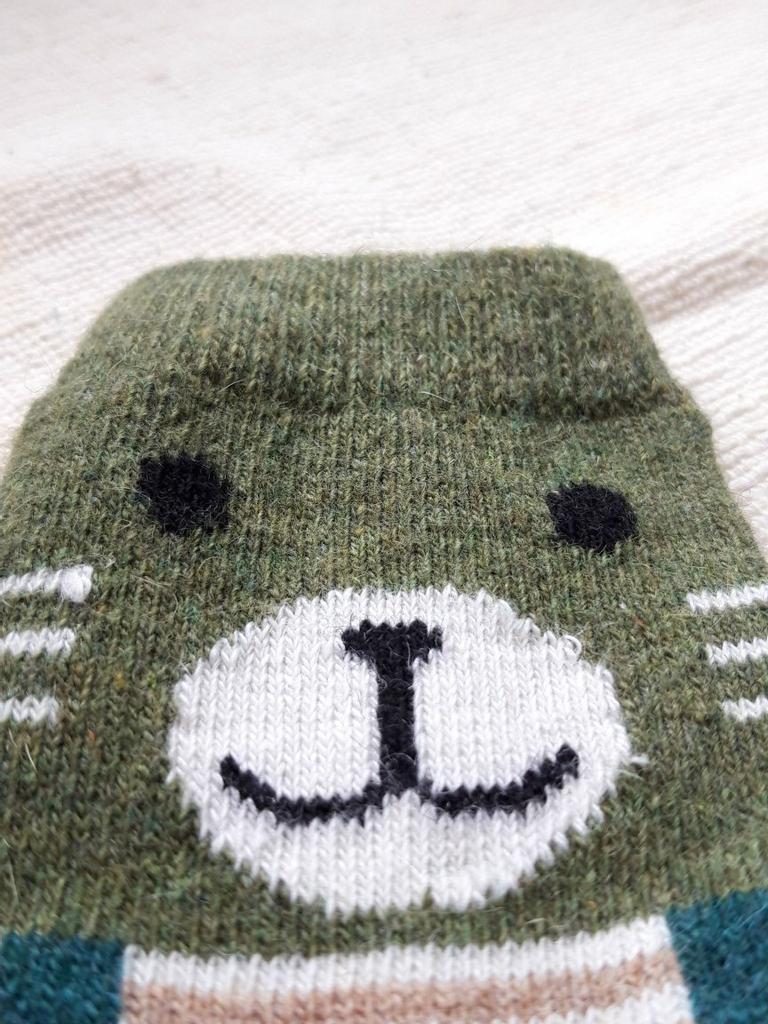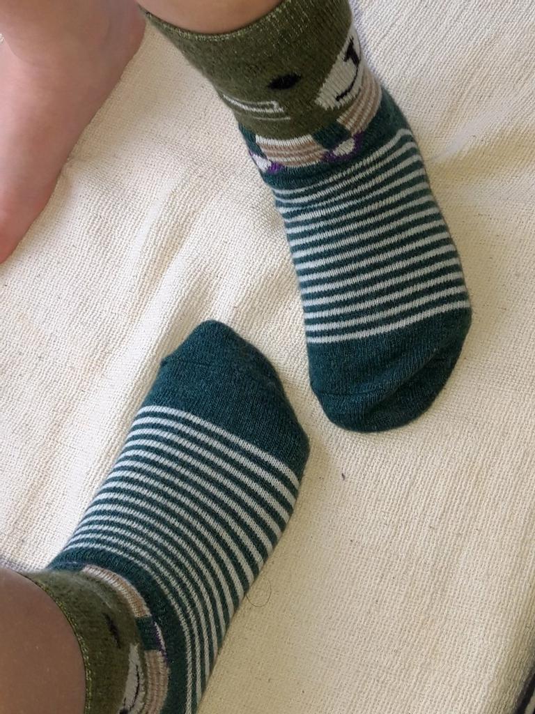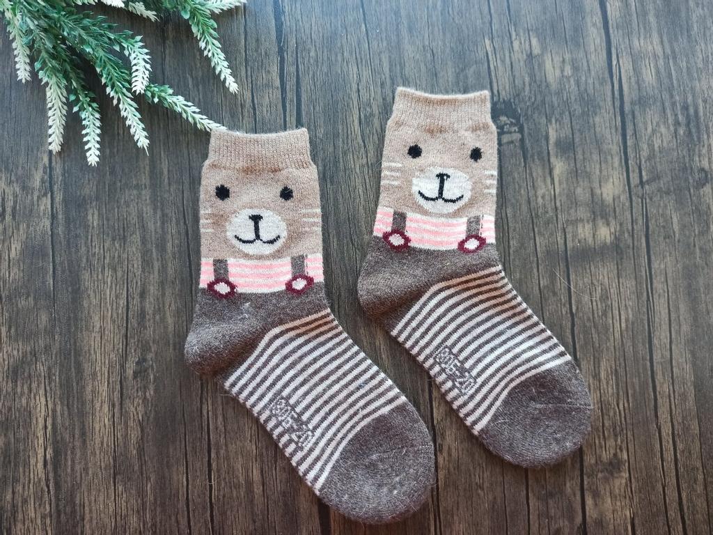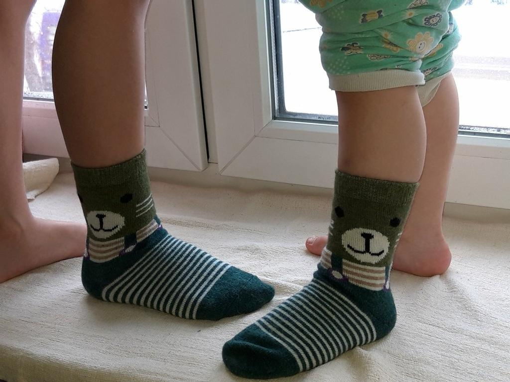 Детские носочки Мне кажется, что это мишка ми-ми-мишка)) в тельняшке 🐻У продавца заявлено на возраст 6-10 лет. У меня мужчины крупные. Одному 5 лет и 32 размер обуви; а другому 2 года и 27 размер ножки. Как видите и тому и другому носочки подошли)) 🐻если верить своим ощущениям и этикетке, то в составе носков присутствует натуральная шерсть. Перевод гласит, что это овечья шерсть и там же значится, что это кашемир. К слову, кашемир это подшёрсток горных коз.... В общем, насчёт коз сомневаюсь, а вот 27% овечьей шерсти -это факт. Так что, на тонкие колготки или бумажные носочки деткам отлично. Старший у меня привередливый он не может носить шерстяные носки, они ему ,,колят ноги,, , а младший может надеть носки-самовязки на босую ножку и отлично себя чувствует при этом. 🐻носочки мягкие. Торчащие нитки, учитывая то, что носки с жаккардовым узором, в пределах допустимого. Трикотаж плотный. Продавцу спасибо большое!