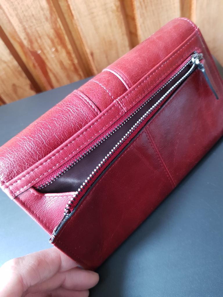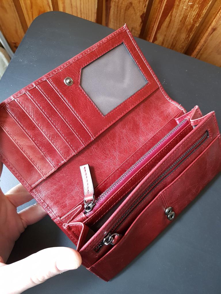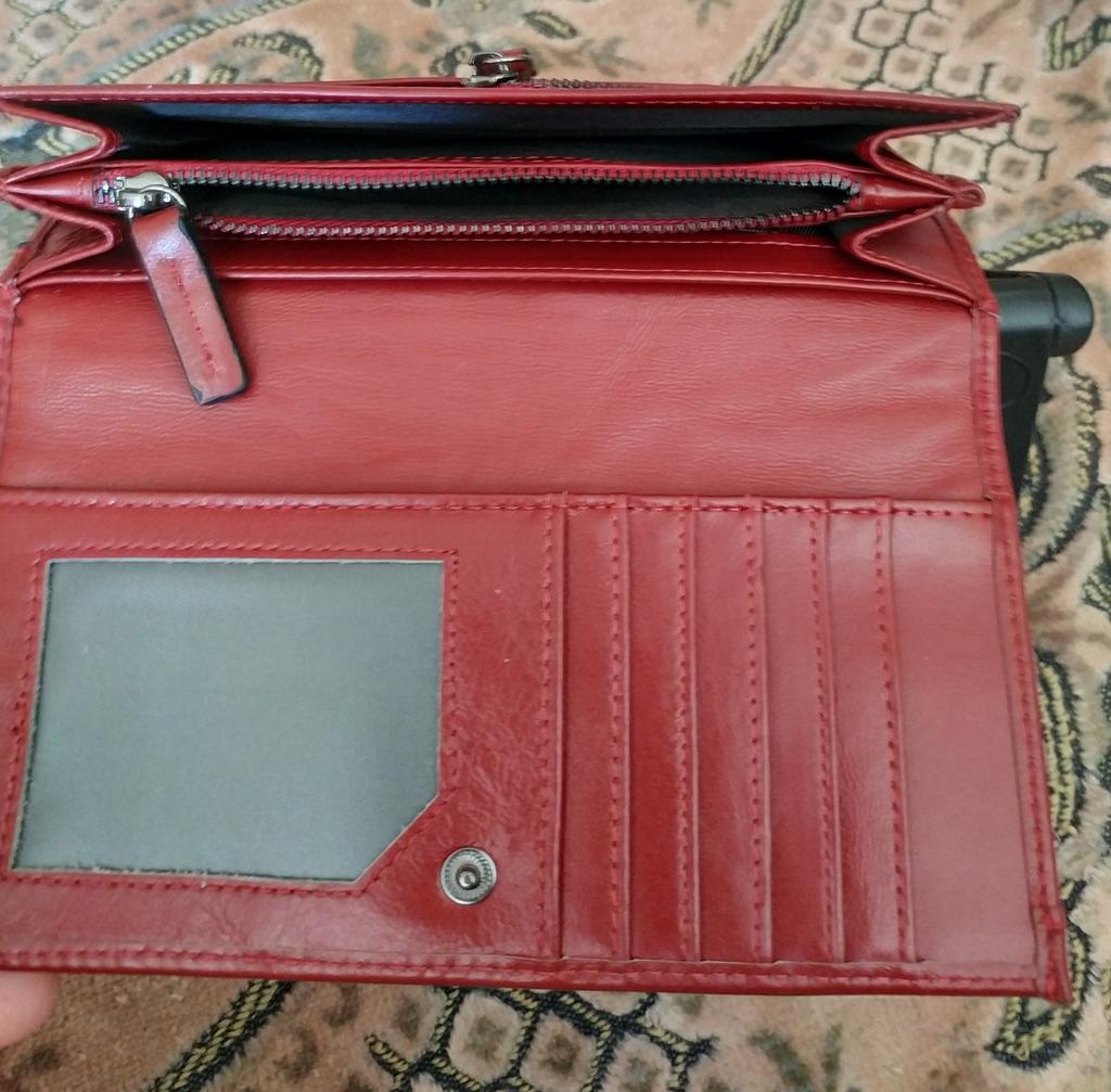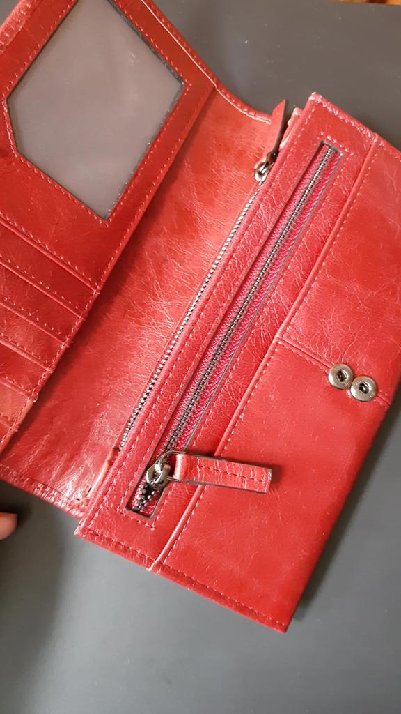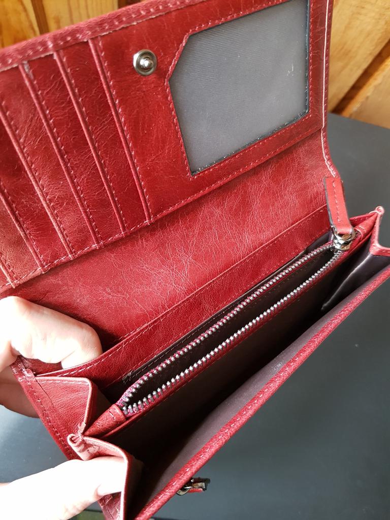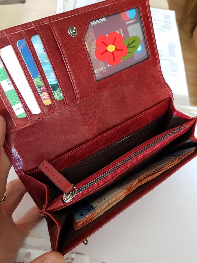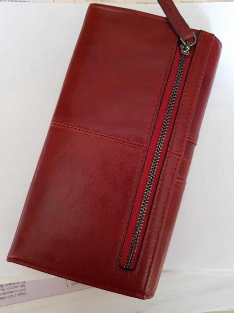 Кошелек пришел быстро👌, заказала 3 мая, отправили 6 мая, в Беларусь прибыл 15 мая. Правда в Беларуси завис немного, и 27 мая уже получила посылку у себя на почте👍🙂. Упакован был в тканевой мешочек, затем в целофановый, затем в плотный пупырчатый, в сам кошелек вложен пакетик для удаления влаги. Качество хорошее, мягкий, удобный, замки работают хорошо, швы ровные, нитки не торчат. Цвет пришел такой, как заказывала, красно-бордовый. Может на фото у меня цвет уходит более в красный, это все из-за цветности камеры моего телефона, на самом деле цвет не броский, не яркий, приятный мягкий цвет. Заказывала на подарок Маме на день рождения. Ей все понравилось😃, много отделов, все можно разложить как она любит, крупные купюры отдельно, мелкие отдельно, монетки под замок, карточки, и еще место останеться. На фото видно, что она уже успела переложить все в новый кошелек, а старый отправился в мусорную корзину. Кошелек имеет две кнопочки-застежки, что очень удобно, если в кошелек много чего положить, то можно застегнуть посвободнее на вторую кнопку. Продавца и товар рекомендую!👍🍀