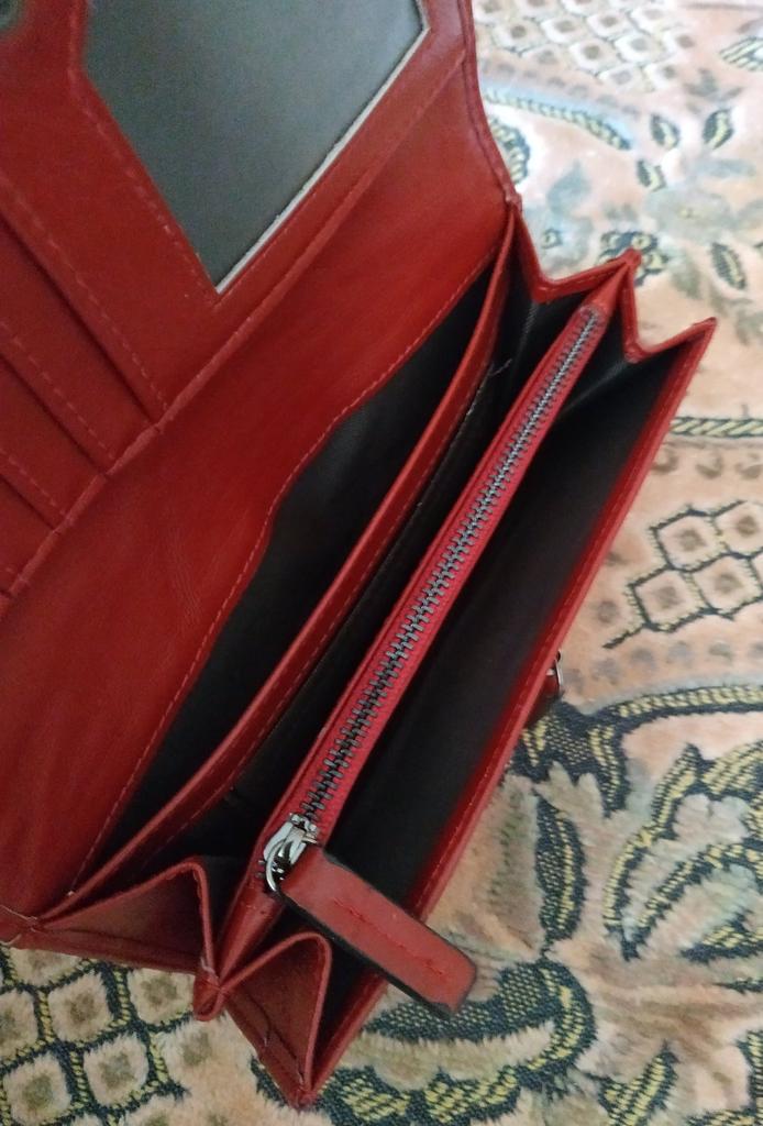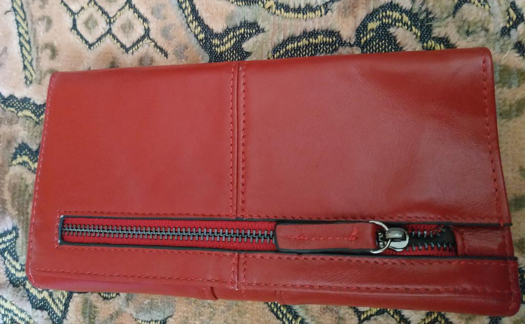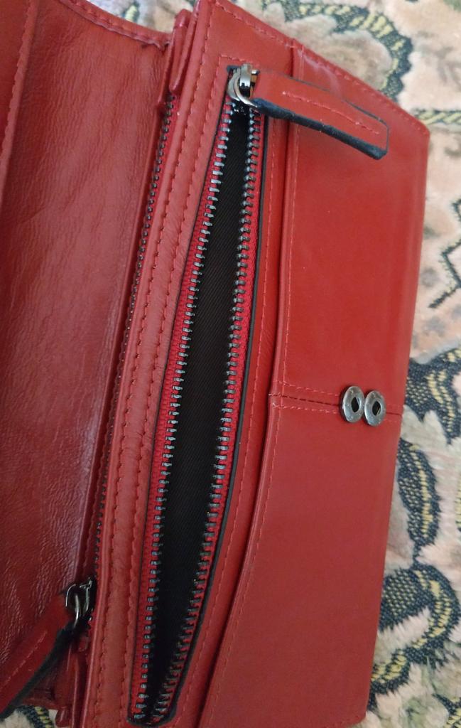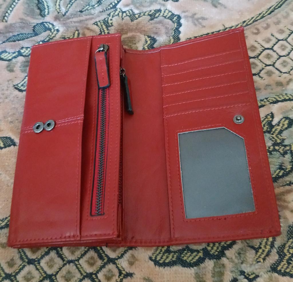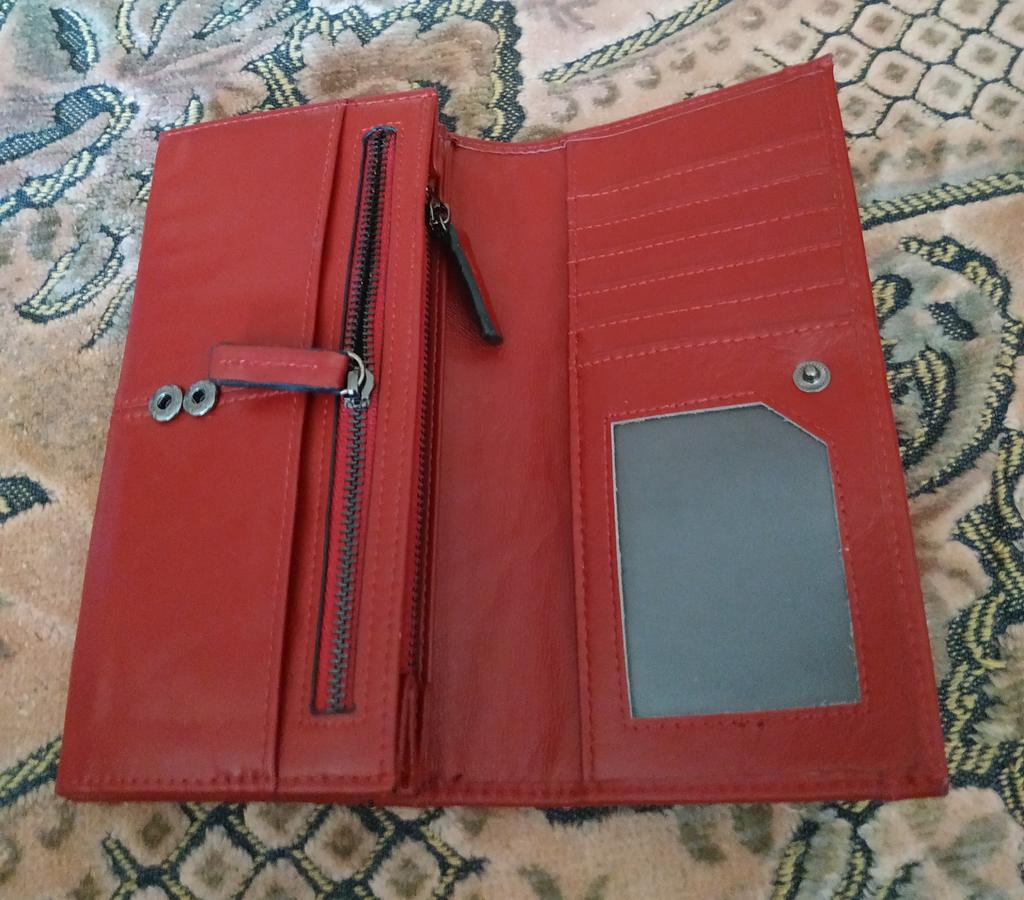Кошелёк такого типа очень удобный, достаточно отделов, замочки все исправны. Изготовлен из натуральной кожи, пошив качественный. Единственное несоответствие с рекламой - это цвет кошелька. Если заказываете красный, то это соответствует бордово-коричневому. А, вообще, покупкой довольна. Продавца рекомендую.