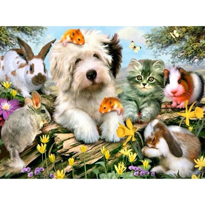 Алмазная картина Кошка и собака Кролик Вышивка Алмазная 5d Алмазная картина Полная дрель
