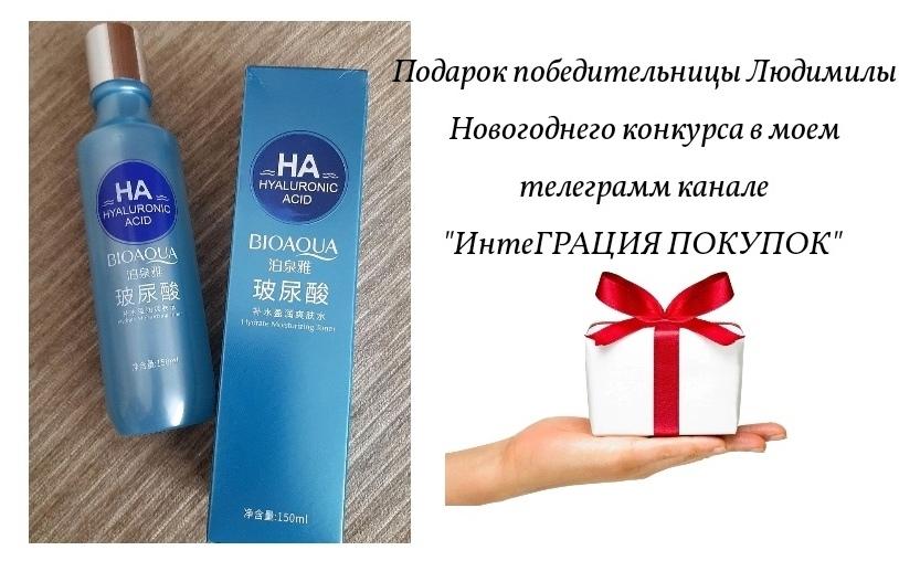 УВЛАЖНЯЮЩАЯ ЭССЕНЦИЯ ДЛЯ ЛИЦА, ШЕИ И ДЕКОЛЬТЕ С ГИАЛУРОНОВОЙ КИСЛОТОЙ 150ml. Подарок🎁 победительницы Людимилы 👱♀️в конкурсе, который проходил в Новогодние праздники в моем t.me "ИнтеГРАЦИЯ покупок" Людмила выиграла 2000К баллов на любые товары в Джум. Выбрала себе порядка пяти товаров. Из них УВЛАЖНЯЮЩУЮ ЭССЕНЦИЮ "BIOAGUA" Пришли все товары в сборной посылочке. Целые и невредимые. Она её заказывать не первый раз. ей нравится.